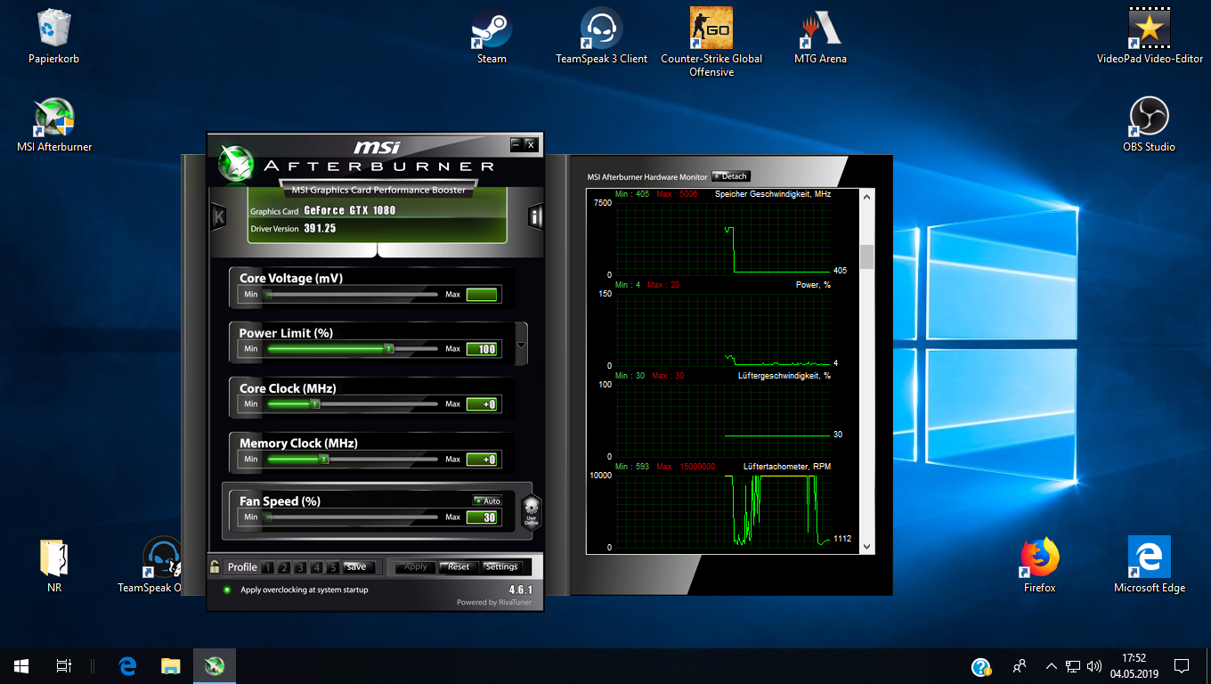 Ab und zu springt der GrakaLüfter Laut Tacho auf 30.000.000rpm, (was ich für ein Gerücht halte) das Problem ist dass er extrem laut wird, obwohl er nur mit 34% betrieben wird....
