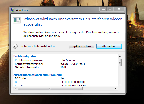 Problemereignisname: BlueScreen