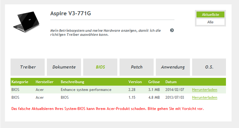 Ich habe ein Problem mit meinem Acer Asphire V3-771G .