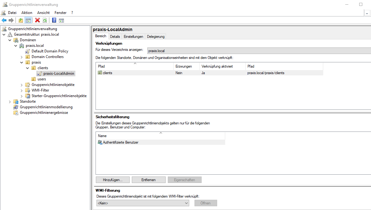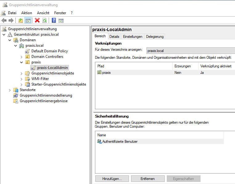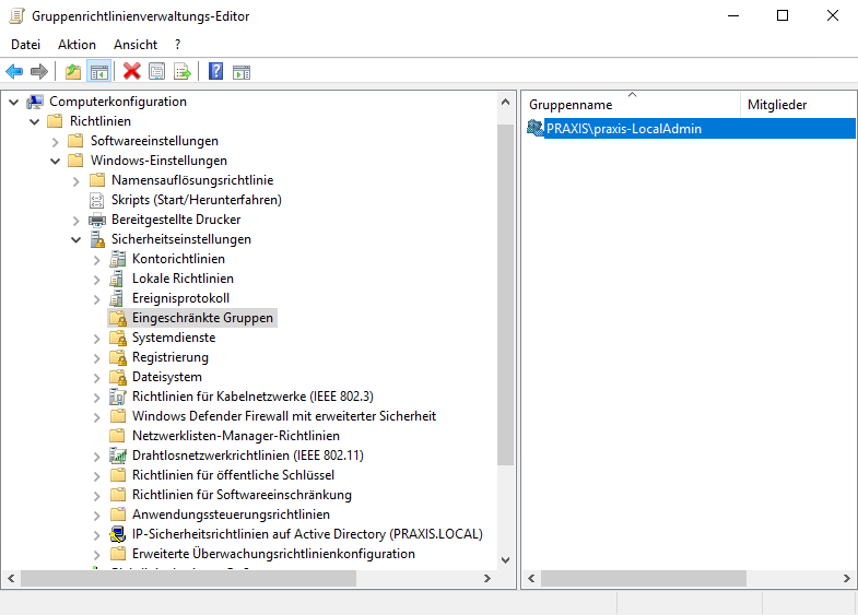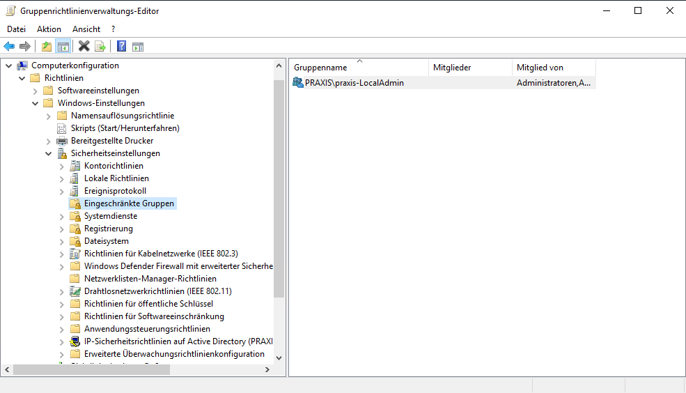 Hallo ich habe eine Gruppenrichtlinie erstellt wo ich allen Usern die in der Sicherheitsgruppe "praxis-LocalAdmin"sind das die local Admin rechte kriegen, aber trotzdem kriegen sie anscheinend nicht die local admin rechte? hab ich etwas falsch gemacht?