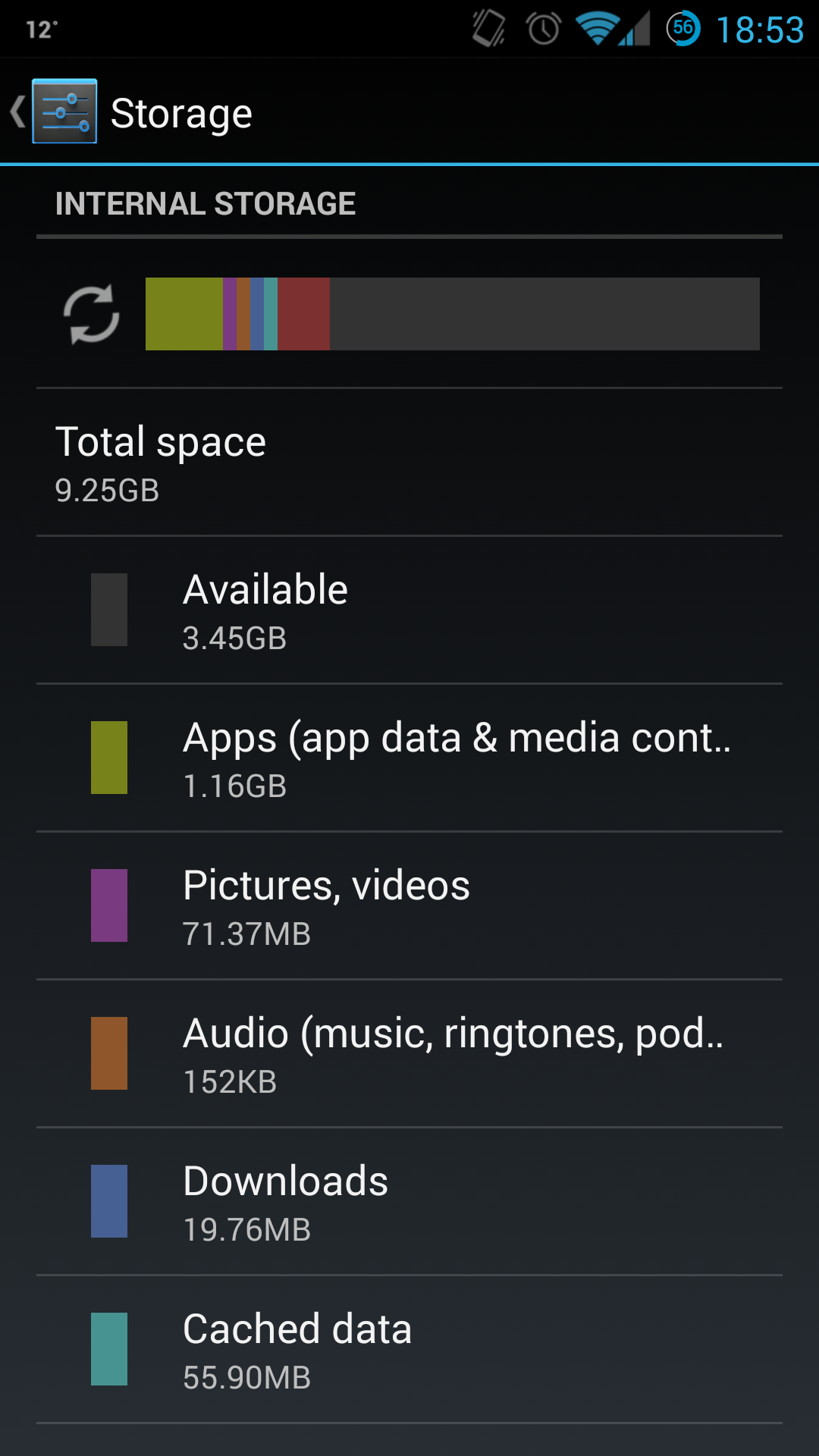 ist es normal, dass bei der Speicherbetrachtung von Android zwar der Speicher visuell richtig dargestellt wird, jedoch die Zahl des freien Speichers nicht korrekt ist?