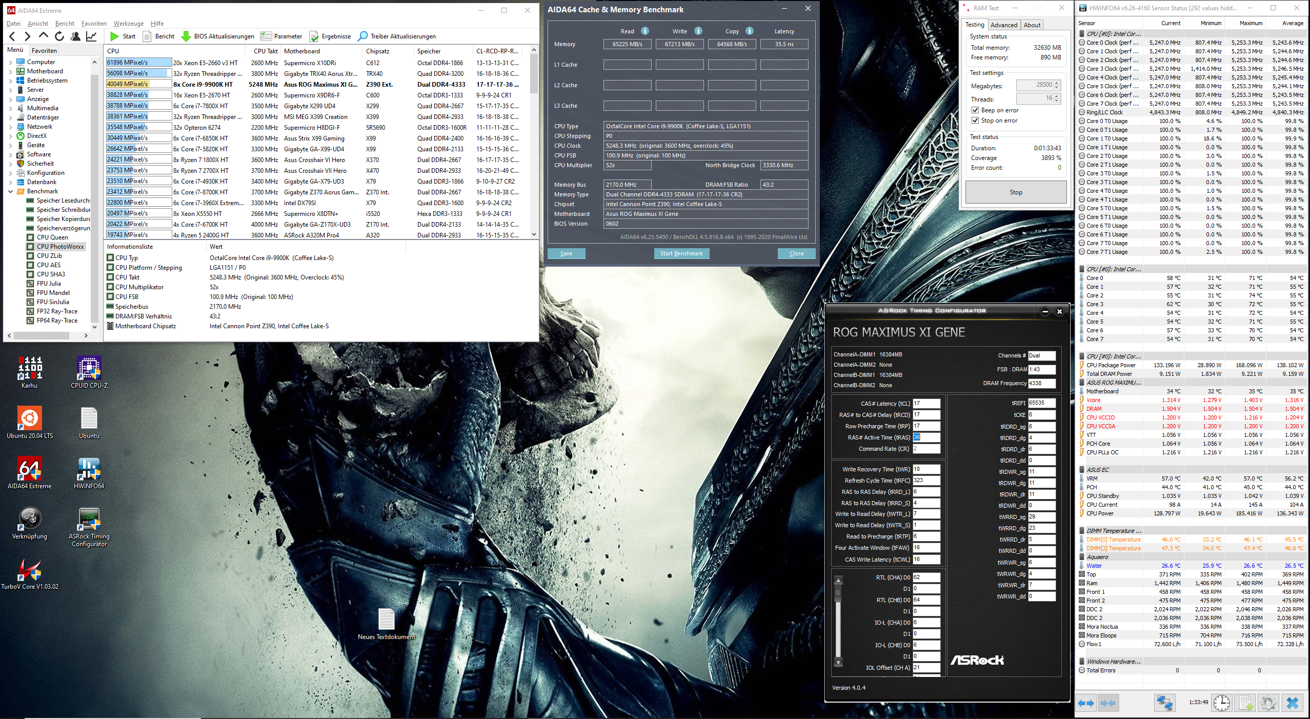 Als Prozessor kam ein selektierter i9 9900k zum Einsatz, bei dem der IMC ordentlich da steht und solche Experimente zulässt.