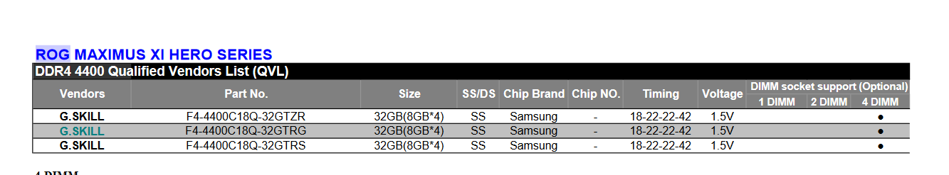 | 2 Dimm Board: Asus Maximus Gene XI Auch hier ist laut Liste bei 4000mhz cl19 vorbei. |