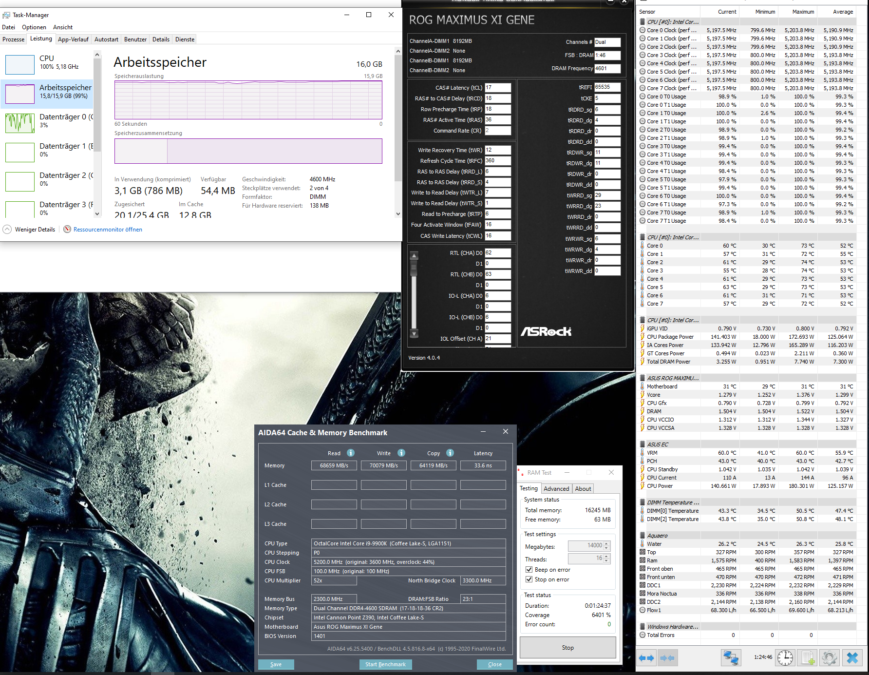 Da ich sie vorher nicht auf 4600cl16 getestet hatte, wurden sie zu Testzwecken bei 1,6v betrieben.