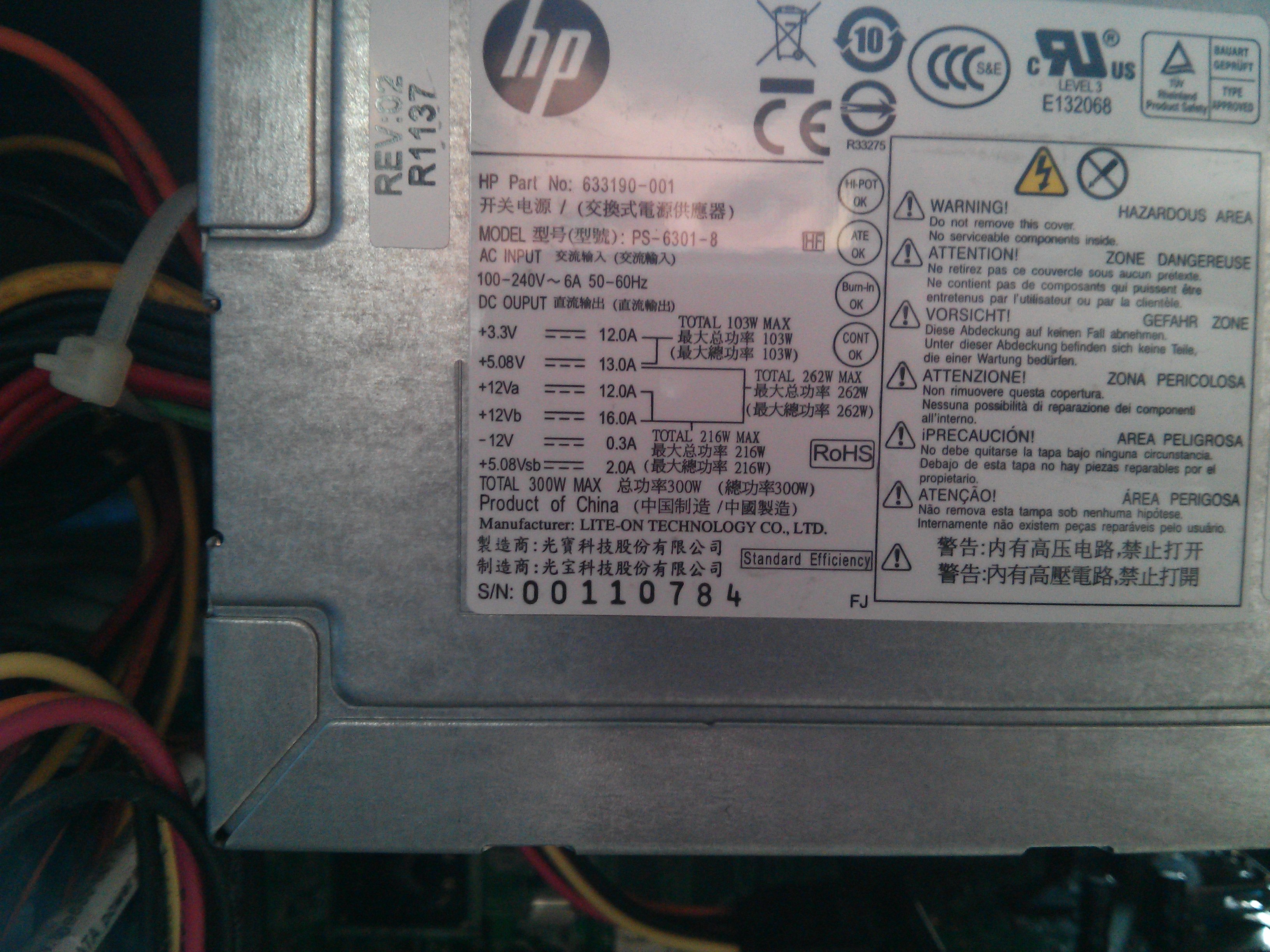Handelt sich um einen HP fertig PC mit einem i5 2320 und einem Netzteil mit HP Aufkleber mit 300W wovon 200W auf der 12V Schiene abrufbar sind (Bild von Aufkleber kann ich später noch hinzufügen)