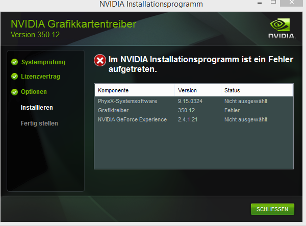 Ich lud mir den neuen Treiber (350.12) runter und wollte es installieren.