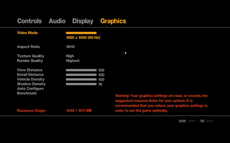 Doch: Stellen Sie zum Beispiel die Weitsicht auf den Maximalwert, erlaubt es das Spiel nicht mehr, die Verkehrsdichte zu erhöhen. Und umgekehrt.