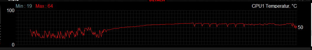 Nun müsstest Du nur noch die Temperaturkurven - nicht die Auslastungskurven - als Diagramm nachreichen. Der Grund ist folgender: Wenn die Hardware zu heiß wird, wird deren Arbeitstakt automatisch heruntergeregelt, um Hitzeschäden an den elektronischen Komponenten zu vermeiden. Werden sie dadurch wieder kühl genug, werden sie wieder hochgeregelt. Konkret heißt das: Es können Ruckler entstehen, die sich so äußern, wie bei Dir. Dafür reichen nur ein paar Grad Temperaturunterschied, wenn sich das gerade auf der Schwelle zwischen "zu heiß, bremsen" und "noch kühl genug, Vollgas" bewegt.