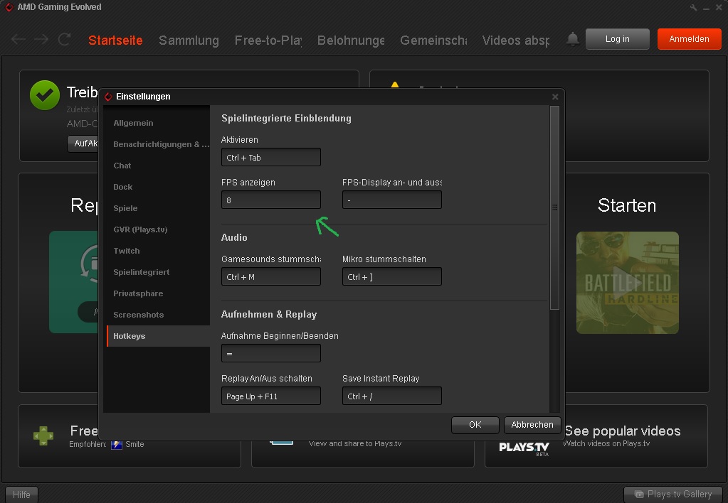Falls du es über Steam spielst, kannst du es dort einstellen.