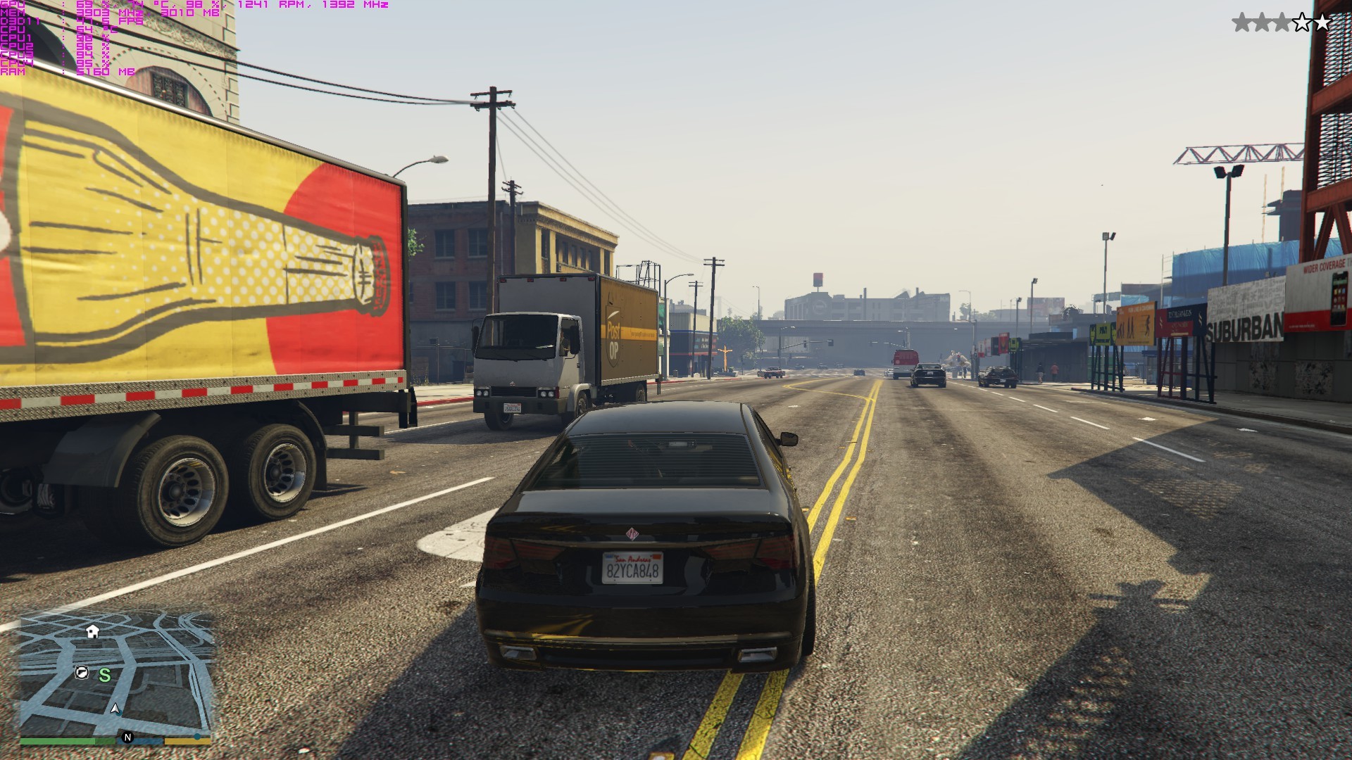 Situation: An sich läuft GTA 5 bei mir zwischen 50 und 60 FPS bei 1080p. Während diese Ruckler auftreten fällt die Framerate auch ab (besonders extrem sind diese Ruckler, wenn ich beispielsweise von der Straße in ein/e Parkhaus/Tiefgarage fahre).