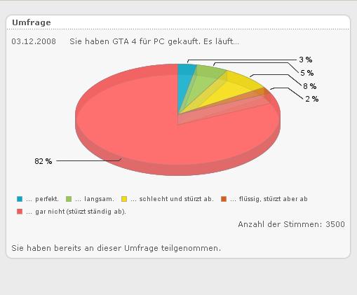 bekomme mein Gta4 wie gesagt voraussichtlich morgen. Obwohl ich nicht weiß wie es bei mir laufen wird (wenn überhaupt -,- ) hab ich meinen C2D E 6750 mal auf 3.0Ghz übertaktet, wollte das sowieso schon vor längerer Zeit mal machen. Mit Prime is alles stabil 47°C oder so aber zurück zum thema.