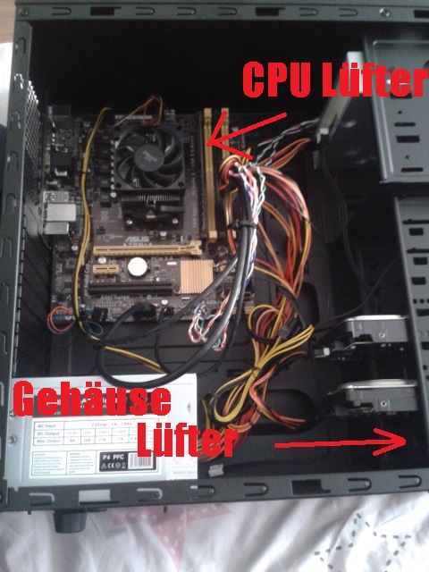 Mein Gehäuse hat eigentlich nur den CPU Kühler und vorne noch einen 120mm green LED FAN