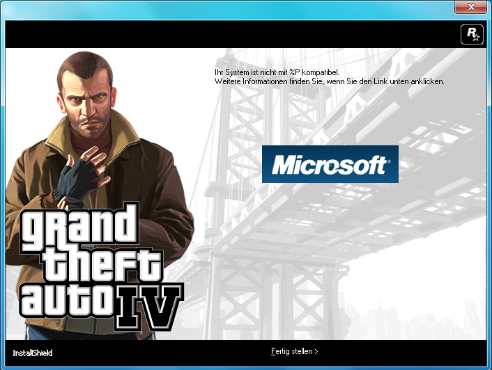 hat es schon jemand hinbekommen GTA4 unter Windows 7 zu laufen zu bekommen? Ich habe mir die x64 Version von Windows 7 heruntergeladen und installiert, allerdings lässt sich GTA4 nicht installieren. Die Installation bricht mit der folgenden Meldung ab. Jemand ne Idee wie man das zum laufen bekommt?