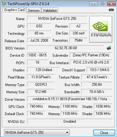 also ich habe es mit GPU-Z ausgelesen, was komisch ist ist der GPU-Typ "G92" sollte aber G92b heißen und der Verfertigung-Typ "65nm" sollte eigentlich 55nm sein.
