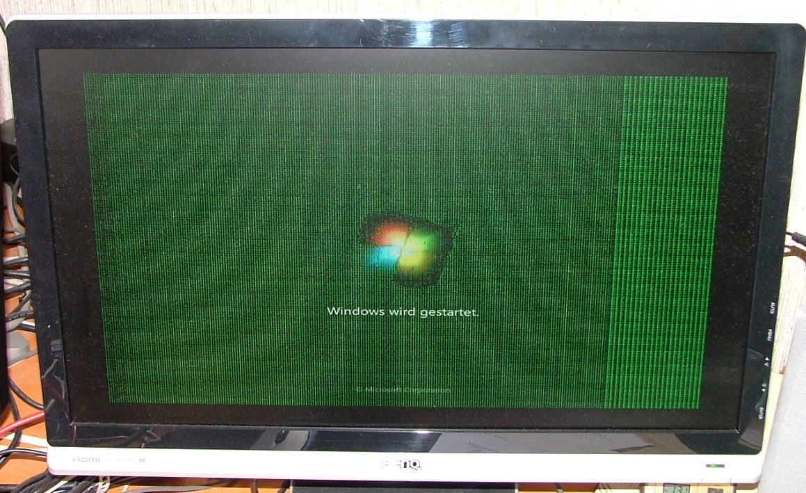 Sobald das dann passiert ist, ist es seltsamerweise so, dass die Karte auch im ganz normalen Desktopbetrieb nach einigen Minuten schwarz wird oder ein Absturz samt Neustart stattfindet. Manchmal, aber nicht immer, hab ich nach dem Neustart auch eine Bild mit über den ganzen Schirm verteilten, tausenden grünen "Grieseln".