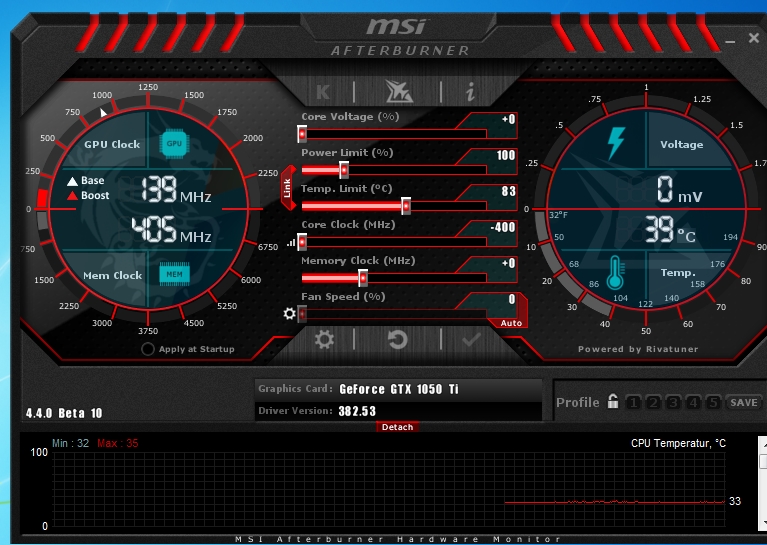 GTX 1050TI 4GB Asus Strix Afterburner,Riva Tuner,HWinfo