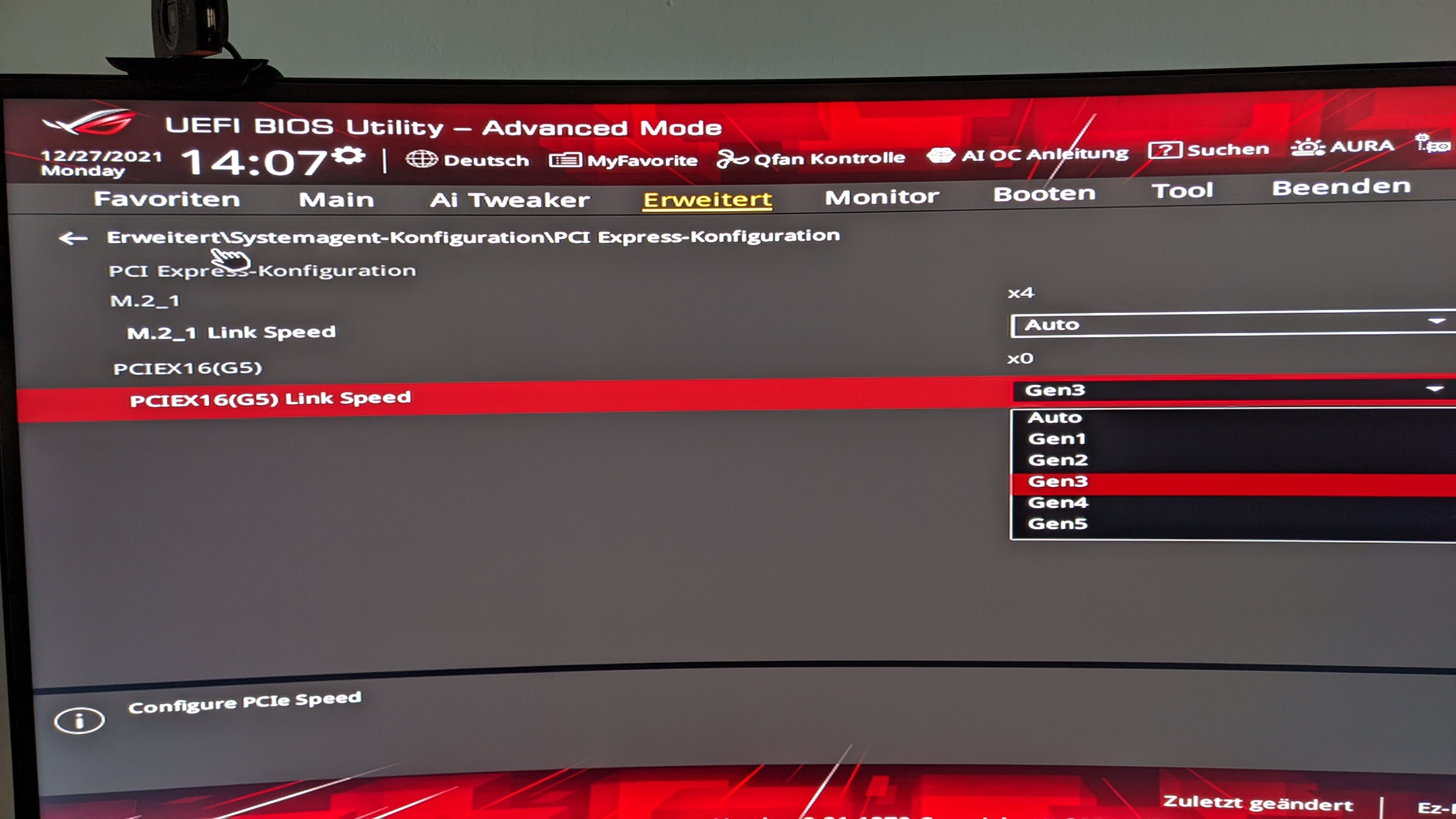 - Manuelles Einstellen des PCIe auf Gen3 (da Grafikkarte PCIe 3.0 kann) bringt keine Besserung