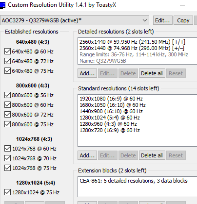 Eine Frage an alle: Habt ihr per CRU Tool die Freesync Range versucht zu erweitern? Ist bei meinem Modell leider nicht möglich, alles unter 48Hz geht nicht.
