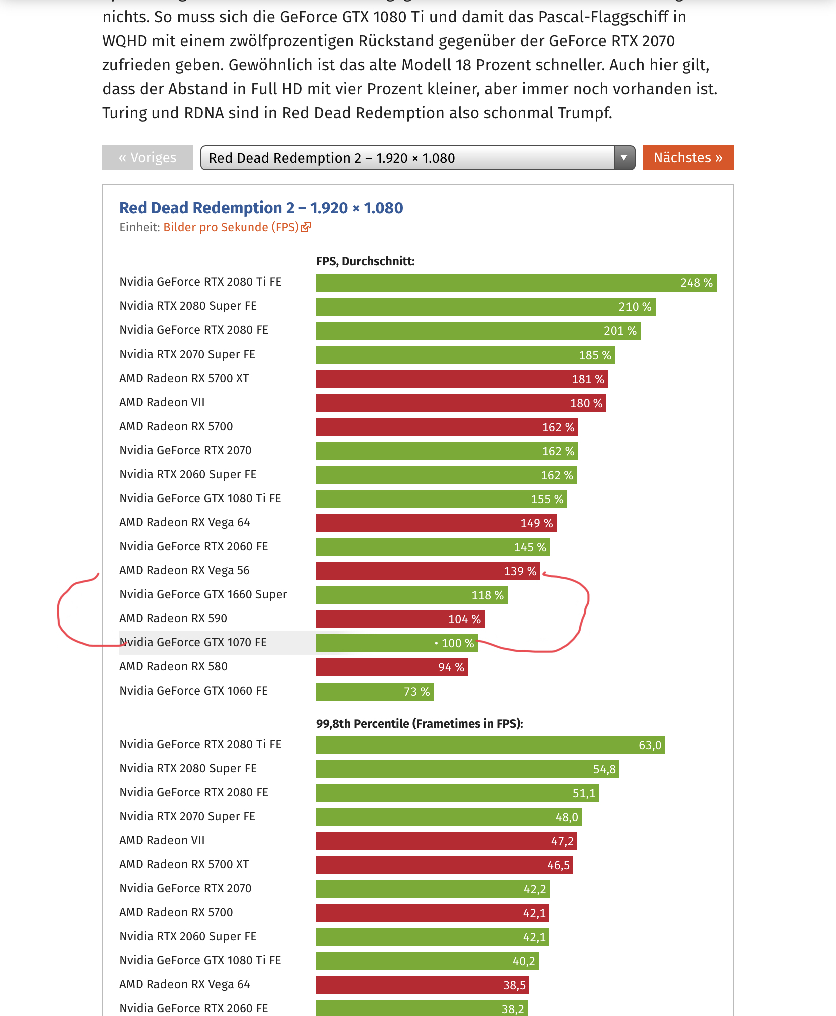 Die Vega 64 die mal deutlich unter der 1080 war ist zum Teil deutlich davor.