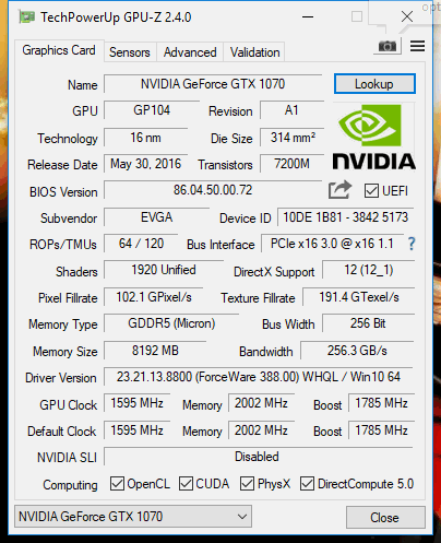 Grafikkarte: GTX 1070