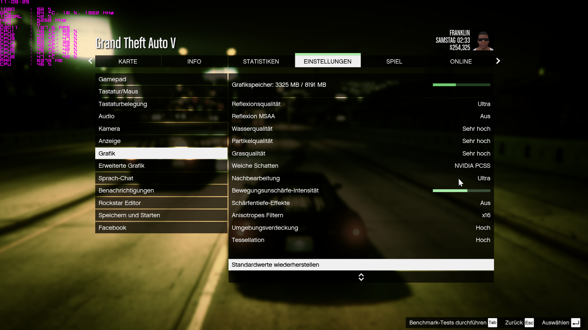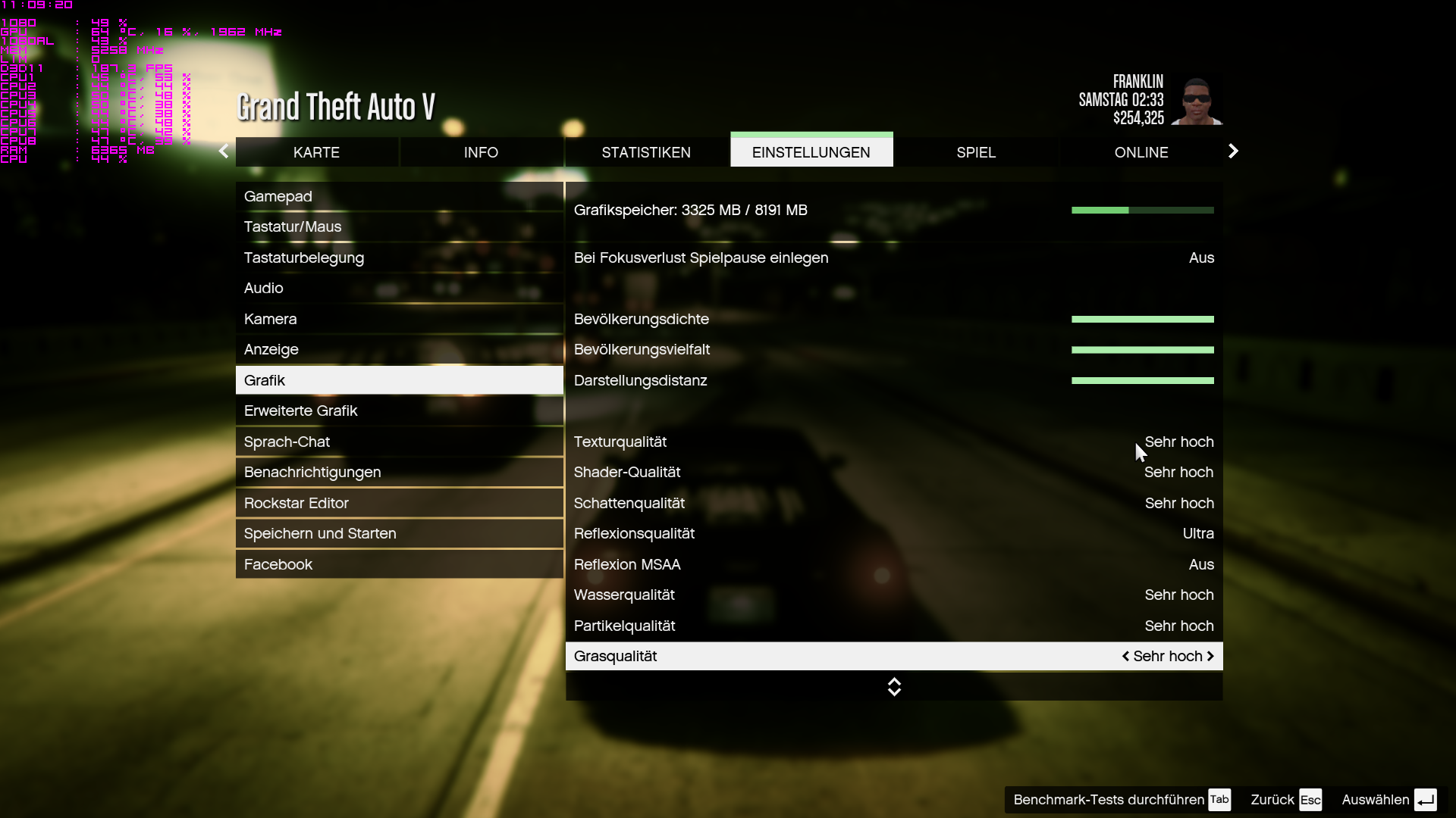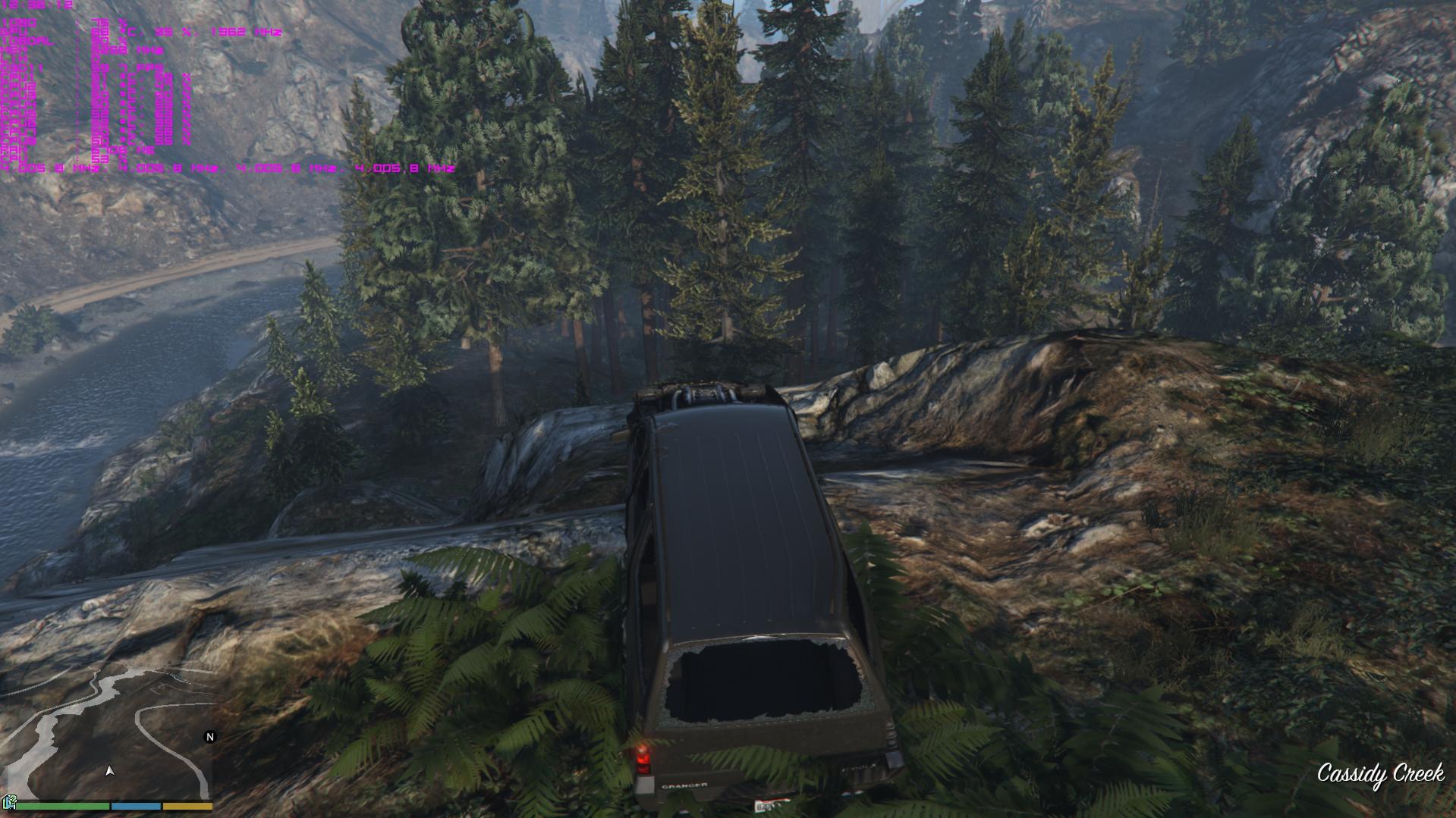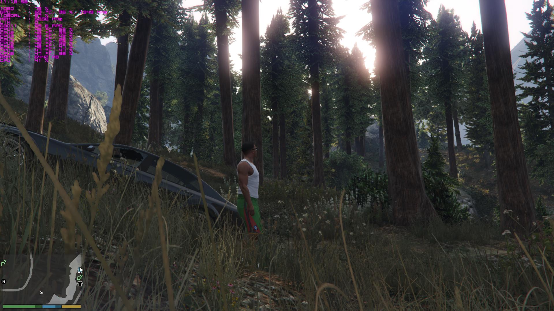 Vor allem das Bild mit dem Auto im Wald. 66FPS, max GPU load. Irgendwelche Vegetationssettings bremsen da gut runter wie es scheint.