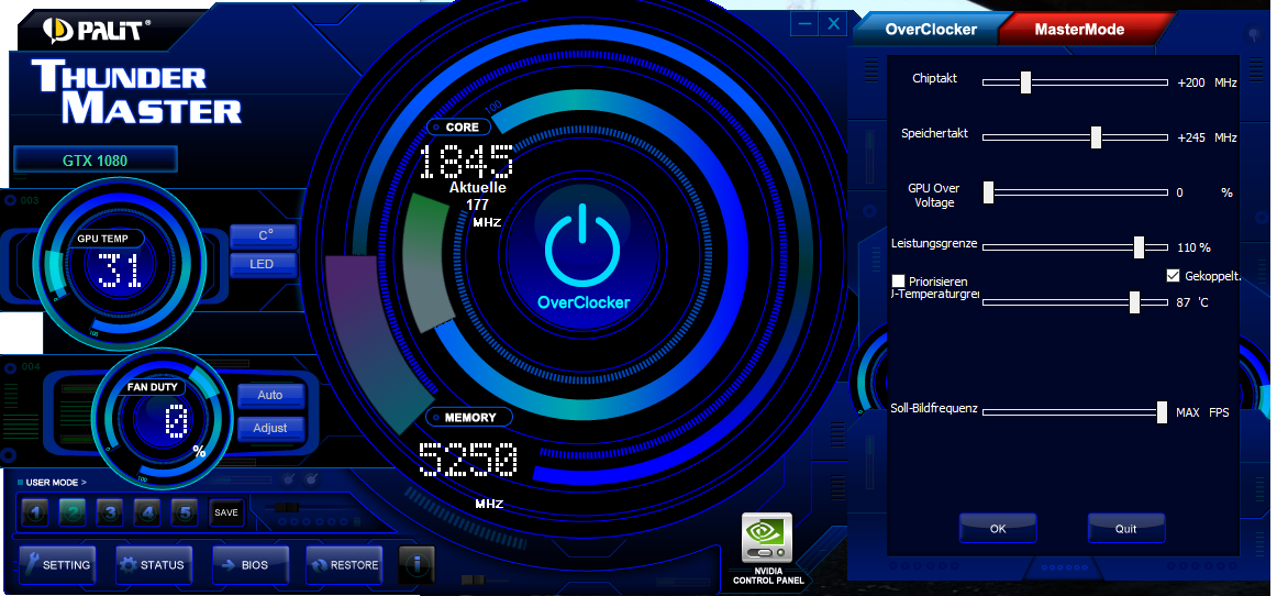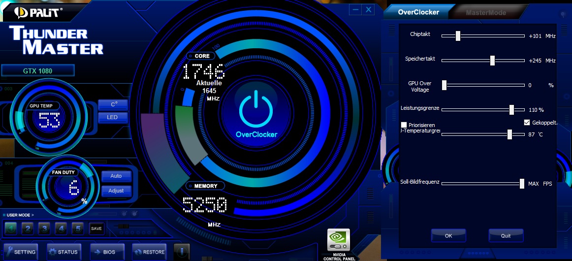 Also bei den Einstellungen kommt die GameRock nicht über 67 Grad. 1200RPM sind etwa 50% Lüfter. Über 70 Grad kommt die Karte bei unter 40%.