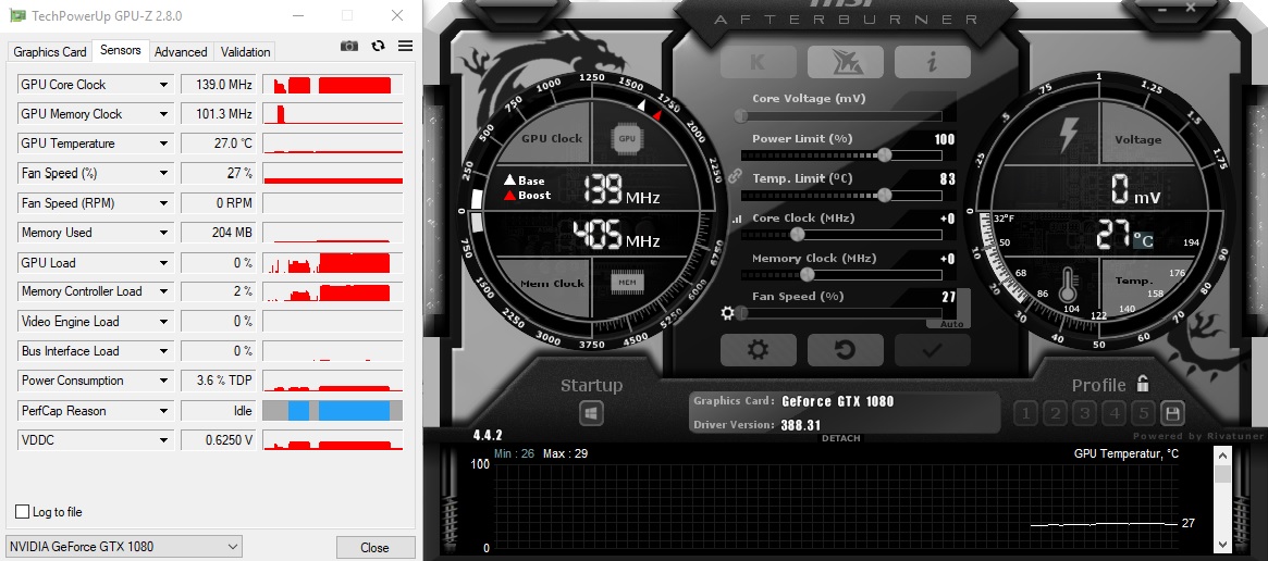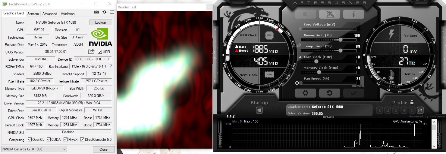 Teilweise macht sich das Problem auch im Windows bemerkbar. Bei manchen Aktionen (kann das leider nicht genau eingrenzen, zum Beispiel wenn was installiert werden soll) schießt die GPU-Clock plötzlich auf Anschlag (zu sehen im MSI Afterburner), nur um dann sofort wieder auf 139 MHZ abzusinken. Beim Anschlag laggt dann der Mauszeiger für einen kurzen Moment.