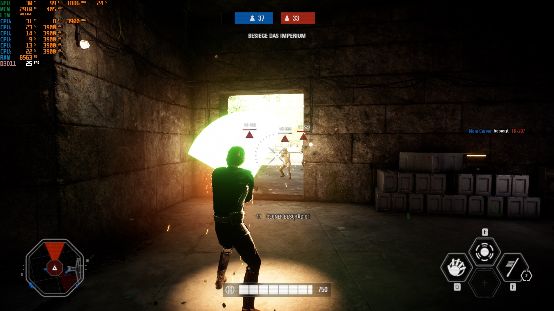 Zuvor war eine GTX 970 im Einsatz (bei gleicher PC-Konfiguration bis auf die Wasserkühlung, die ist neu). Mit dieser lief SWBF2 auf mittleren Einstellungen mit ca. 50-60 FPS.