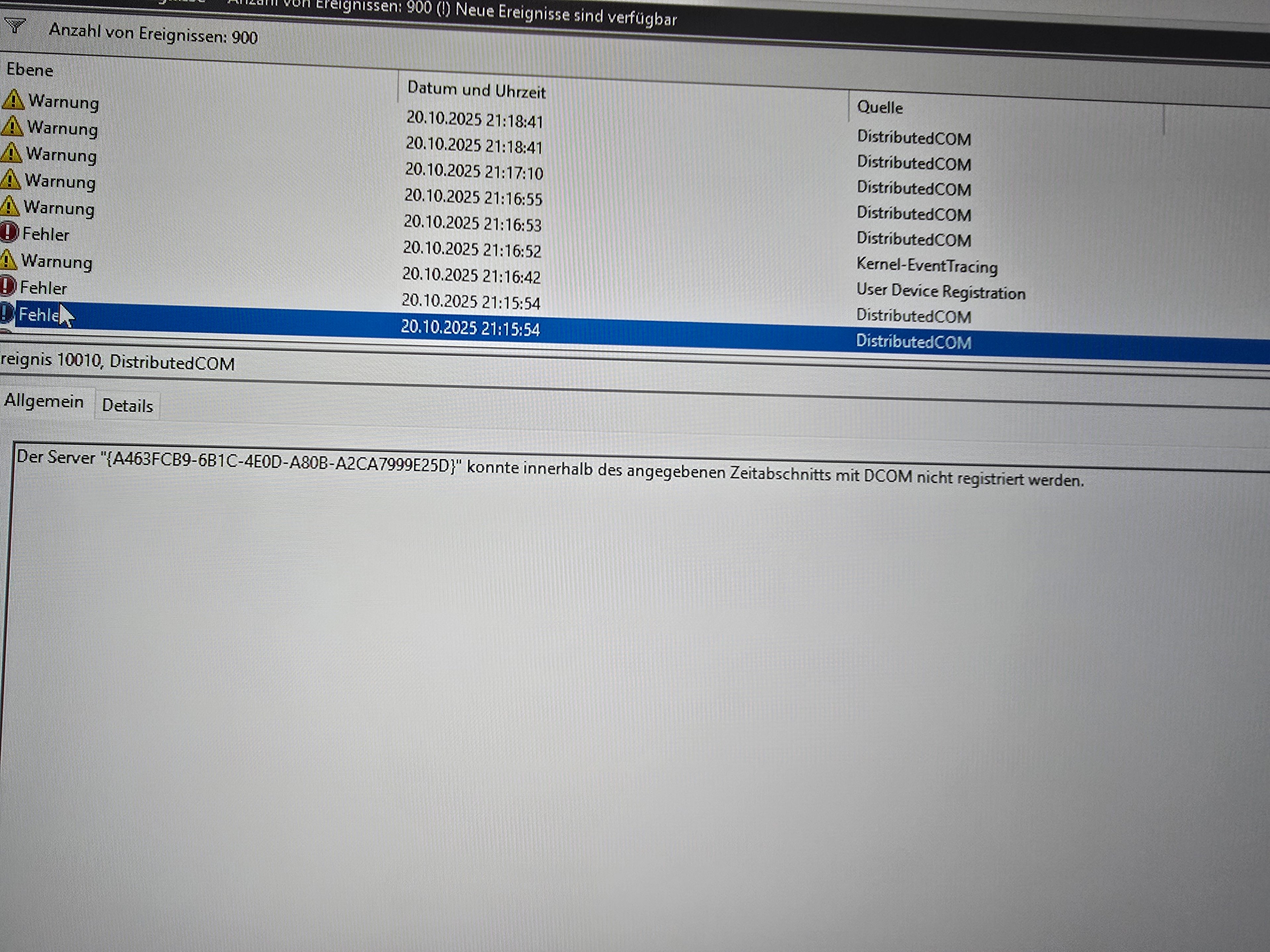 DER SERVER"(FD06603A-2BDF-4BB1-B7DF-5DC68F353601)" konnte Innerhalb des angegebenen Zeitabschnitts mit DCOM nicht registriert werden