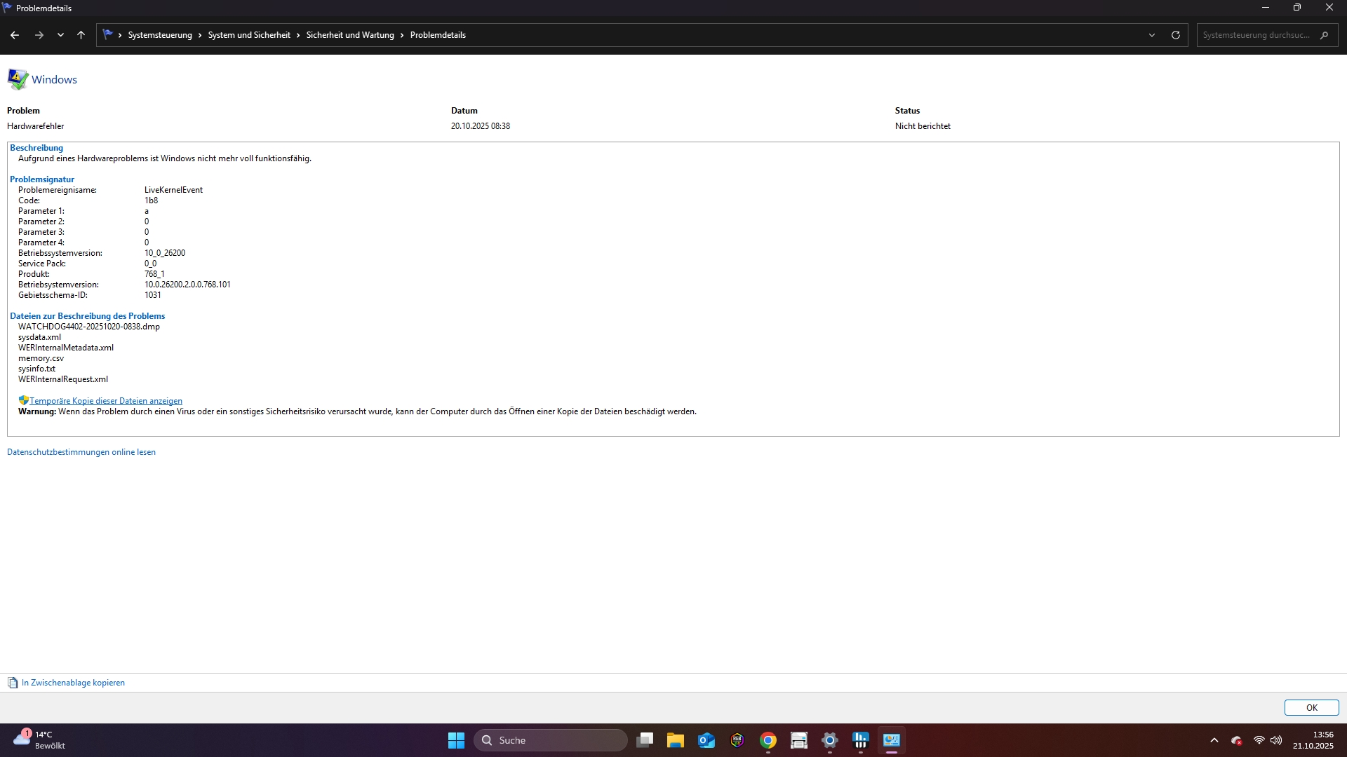 Windows neu aufgesetzt, alle Treiber aktualisiert und Die RAM Speicher einzeln in den Slots getauscht und laufen lassen. habe das Gehäuse an der Seite geöffnet und auch bereits MSI Afterburner installiert und zur Überwachung InGame laufen lassen. Gestern Abend war noch ein Bekannter Via "ANYDESK" dazugeschaltet, der Konnte Jedoch bis auf einen Haufen Fehlermeldungen aus der "Ereignisanzeige" nichts weiter anrichten