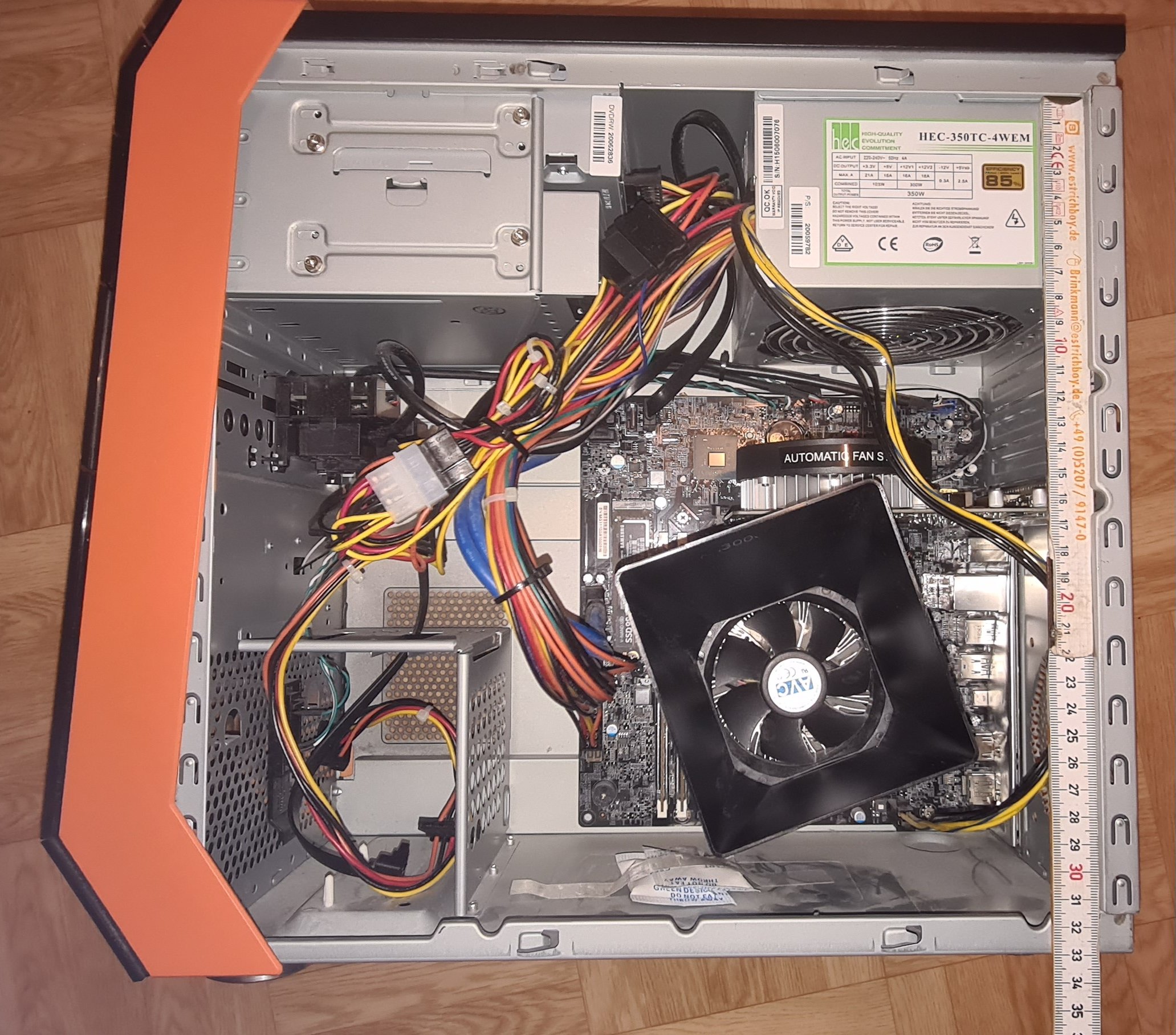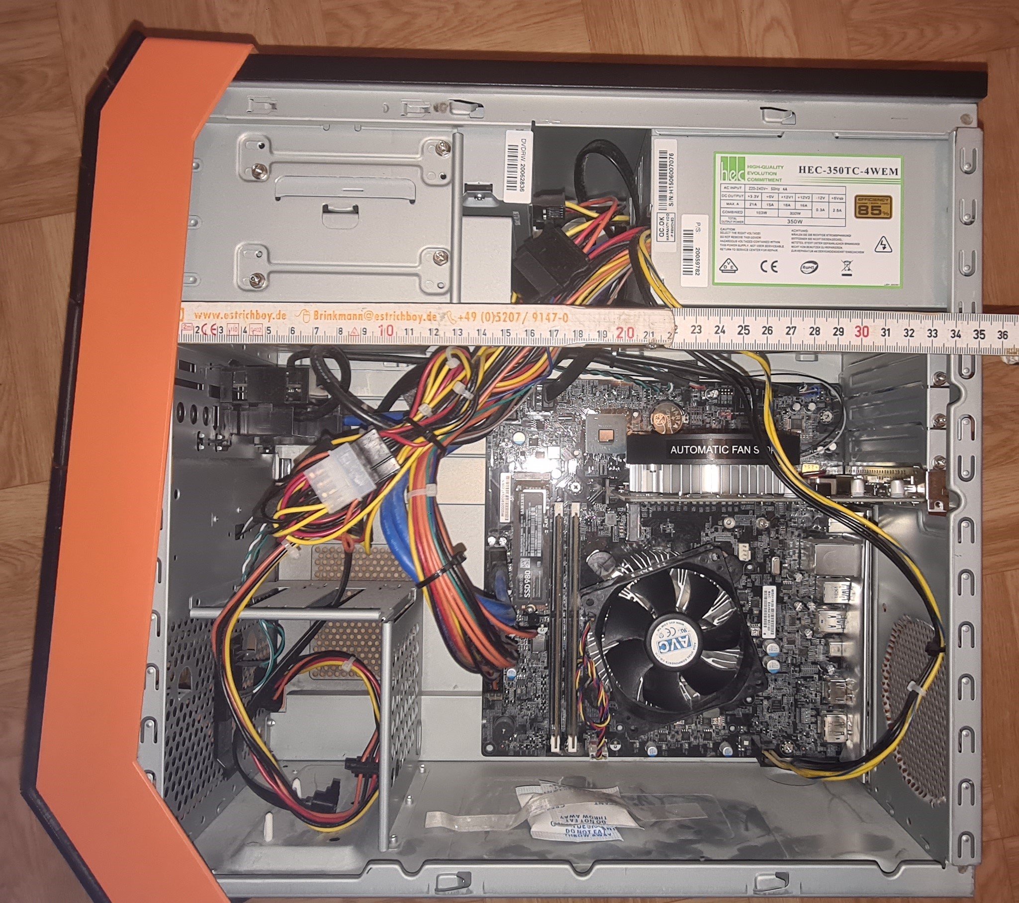 Im Anhang sind Bilder von meinem Gehäuse, samt Abmessungen mit und ohne CPU Lüftertrichter und Gehäuseöffnungen.