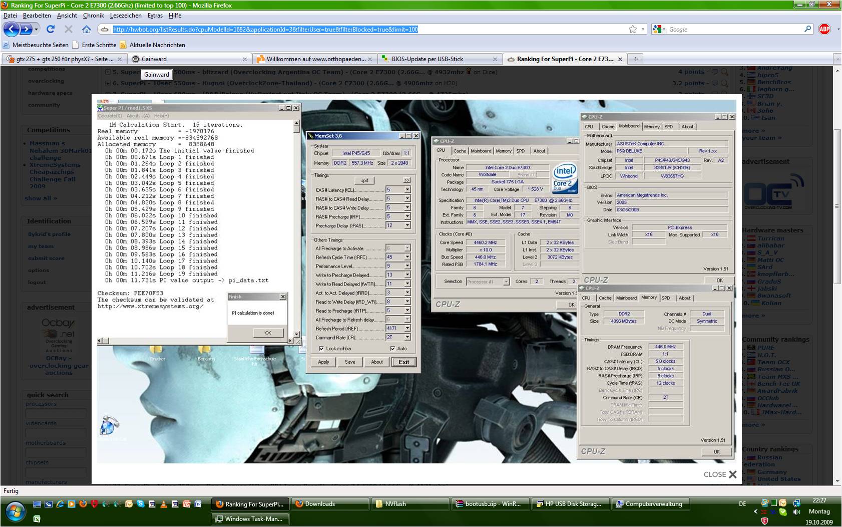 Der CPU kurzzeitig 1.3V zu geben und fix mit 4ghz zu benchen ist sicherlich kein problem, ich versuchs einfach mal ... mein gott wenn er sich aufhängt gibts keine screens