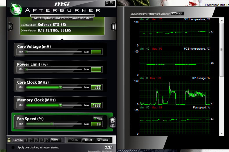 Jetzt hab ich aber auch manchmal Framedrops, nicht oft, aber so dass es eben kurz ziemlich ruckelt. Bei MSI Afterburner werden dann bei der Auslastung immer Last-Spitzen angezeigt (siehe Screenshot).