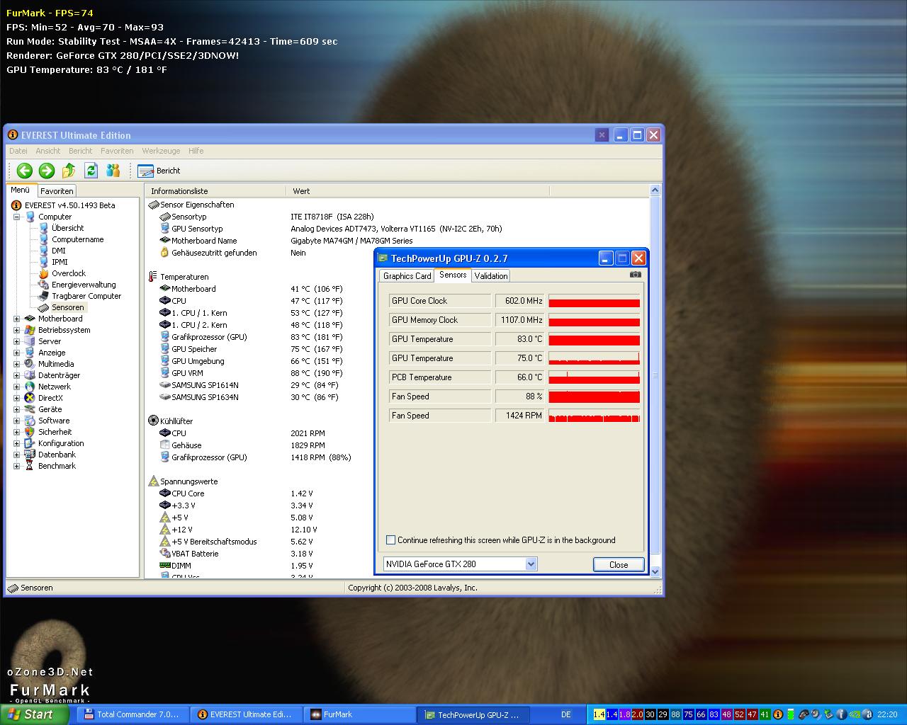 bei Canyon Flight , vorher 102 ° jetzt 49° ( das bleib auch max. temp ) - klar jetzt wakü vorher nur lukü, dennoch im vergleich zu anderen wakü besitzern die ihre GTX 260/280 wakühlen, ein überagender Wert imho