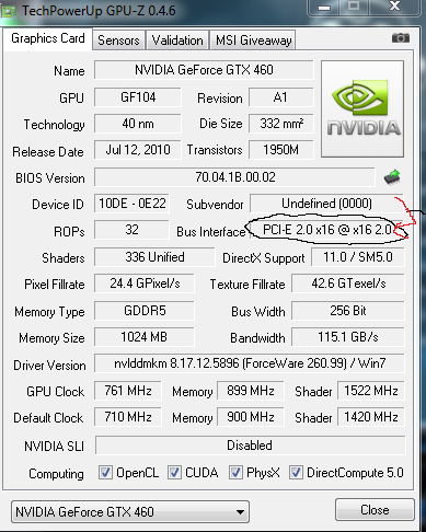 GPU model: NVIDIA GeForce GTX 460 8.17.12.6099 1024Mb