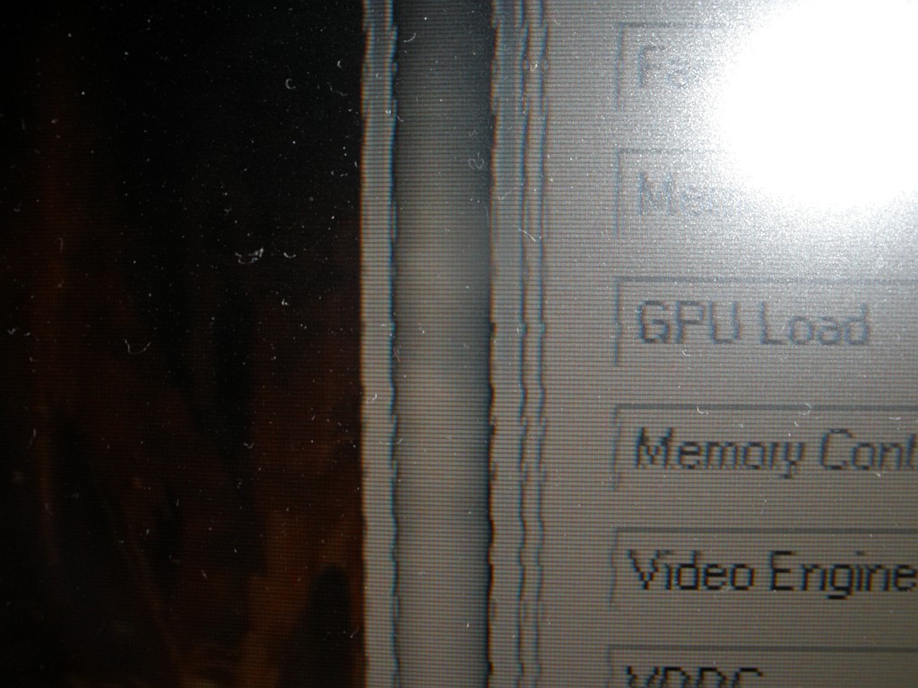 Ab der 45. Sekunde im Furmark bei 80°C und 70% Lüfter-Geschwindigkeit werden die Fehler sichtbar (Video). Bei 84° und 82% Lüfter-Geschwindigkeit sind sie dann wieder weg. Schließe ich Furmark wieder, kommen die Fehler bei 43° und 55% Lüfter-Geschwindigkeit (Video) noch mal wieder für ein paar Sekunden.