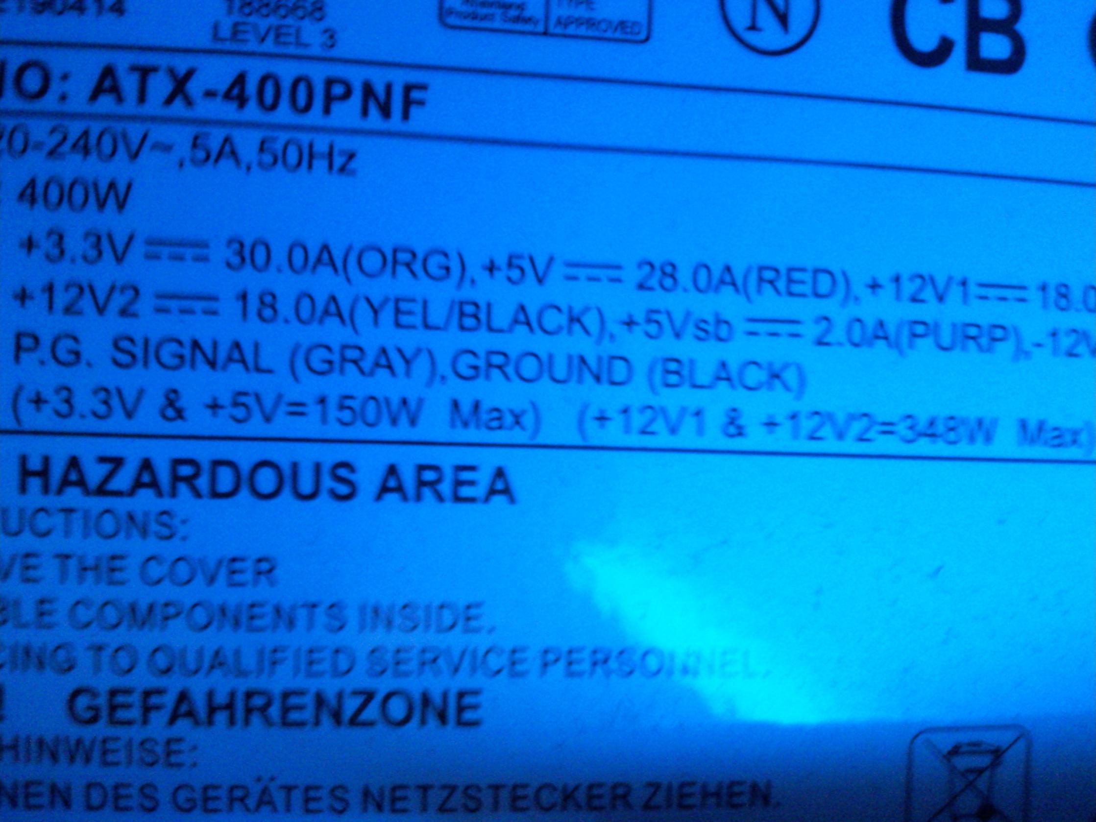 netzteil ist ein fsp group inc. atx-400 pnf mit 400 watt ausgang