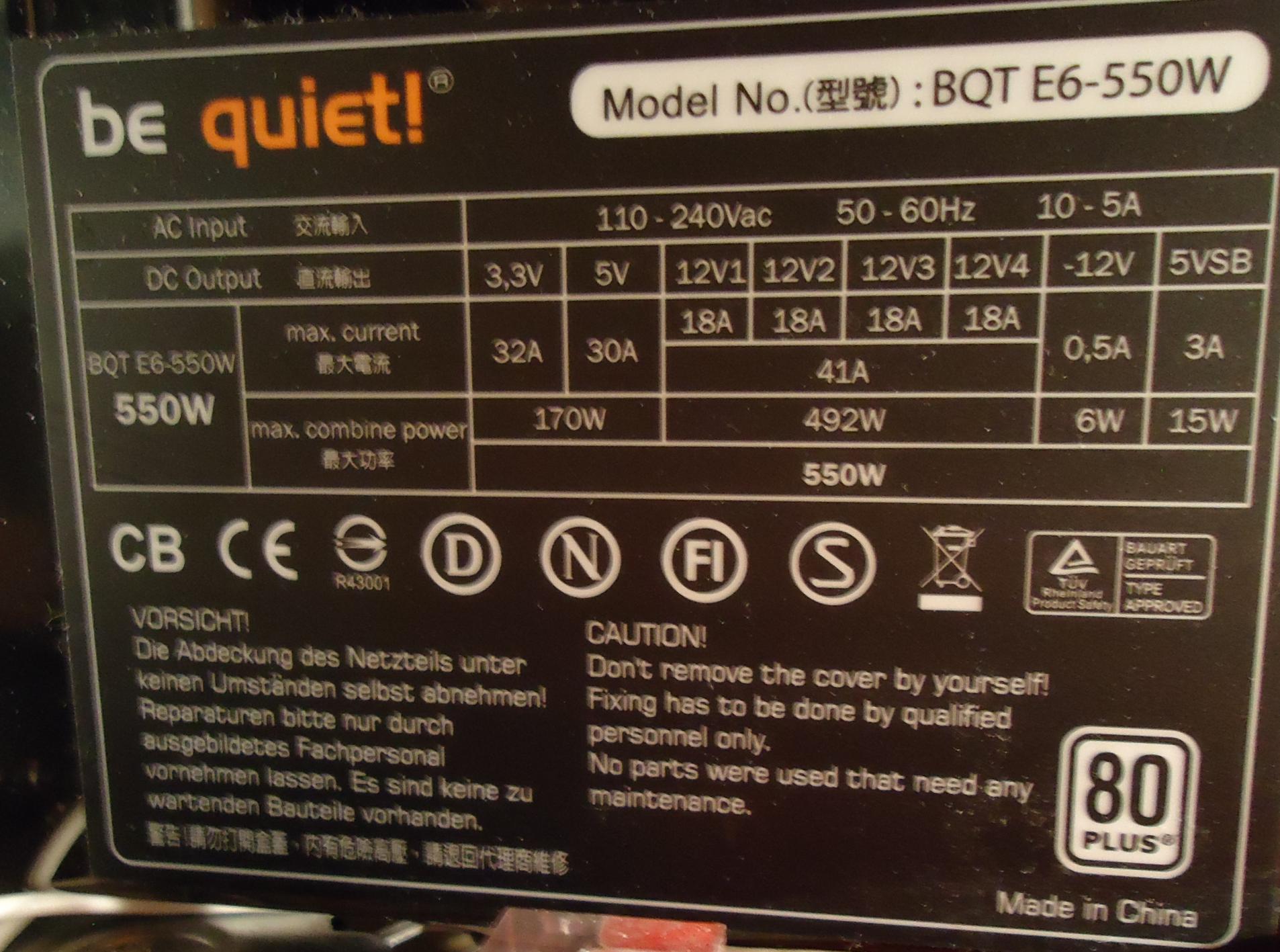 Nt ist ein gut 2 Jahr altes BeQuiet! Straight Power 550 Watt.