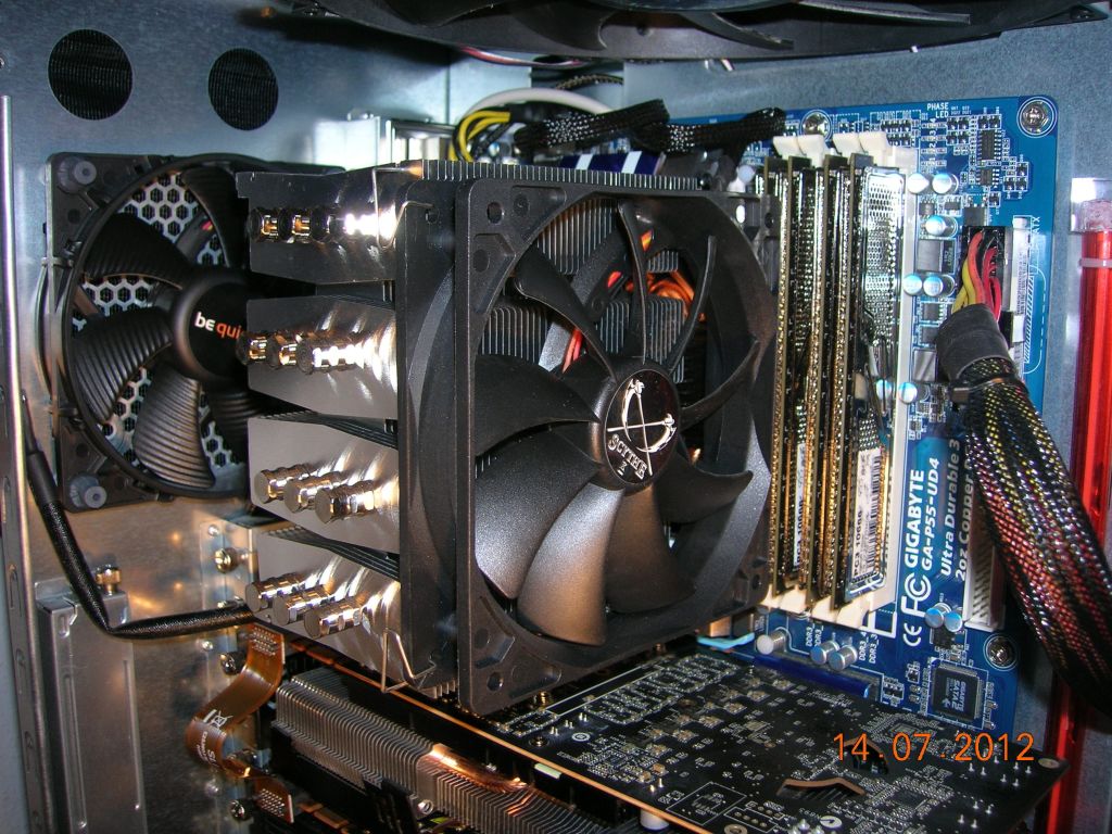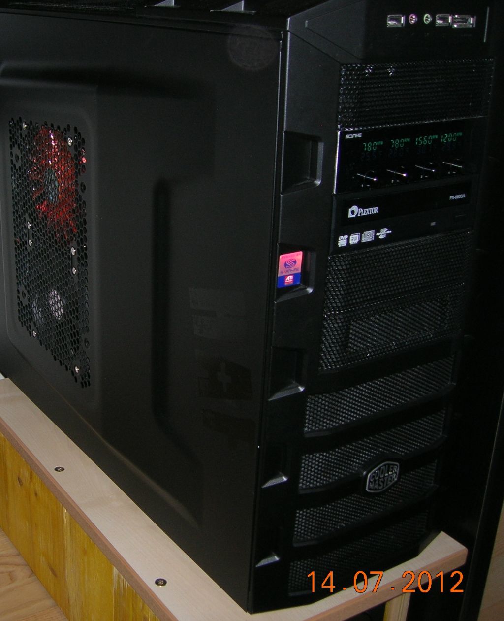 Als Basis meines Systems steht ein Sockel 1156 Gigabyte UD4 ATX Mainboard @ I7 860 Prozessor (Scythe Mugen 3 gekühlt) und 8 GB DDR3 RAM. Dies wird in einem Standard Coolermaster HAF 922 Tower (Midi groß) betrieben. Caselüfter 1*220 vorne, 1*220 in der Decke und 1*120 hinten oben.