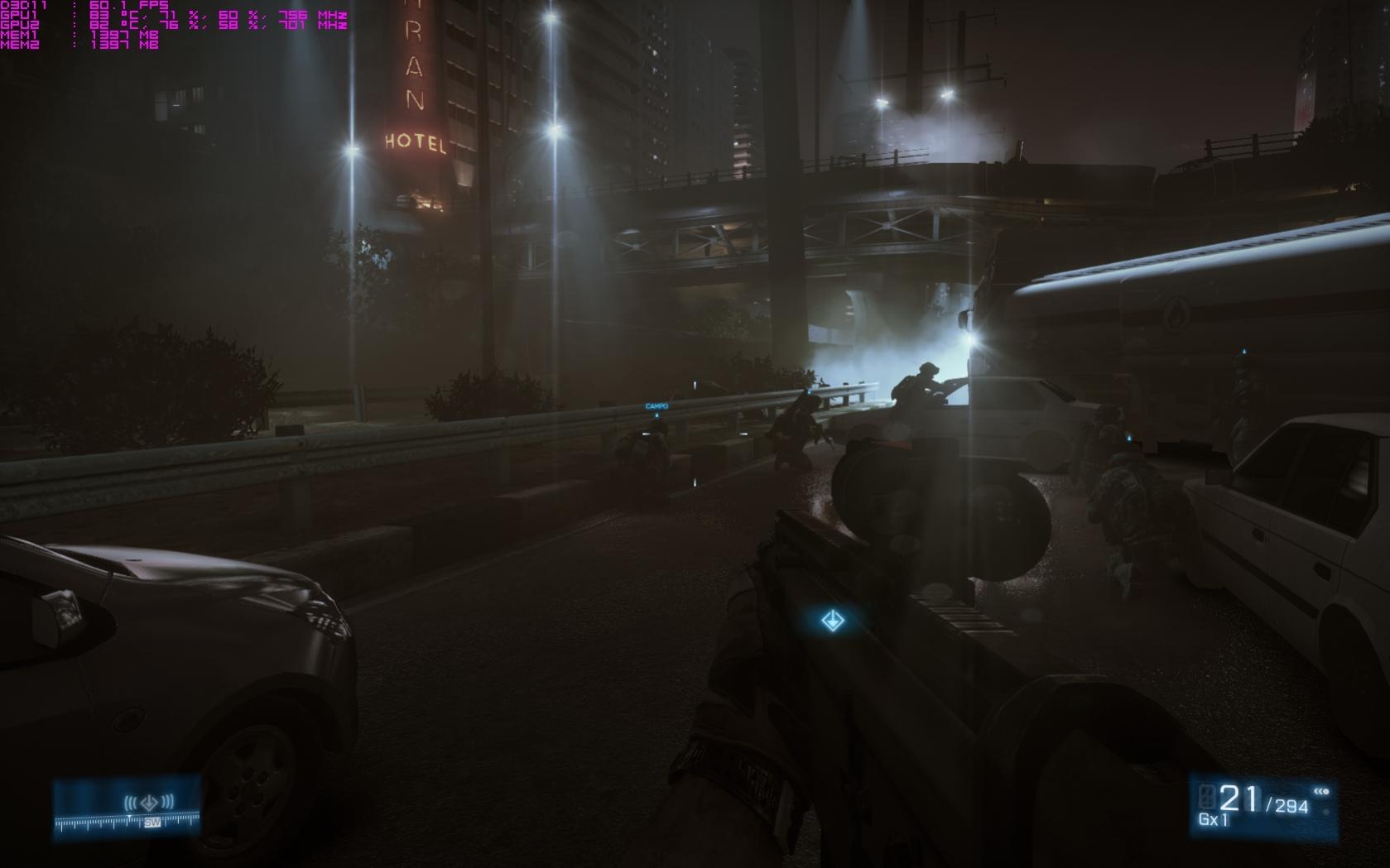 Das Spielerlebnis ist im Vergleich zur Single GPU Lösung nun auf völlig neuem Niveau. Bis dato musste ich @ Ultra, 4*MSAA immer wieder störende fps drops auf 30-35 hinnehmen. Max fps waren so um die 50. @SLI hängt die Performance jetzt endlich am erwünschten VSync Limit von 60 fps. Keine Drops mehr und die Karten skalieren in Sachen GPU Usage wunderbar. Gleiches gilt für Crysis 2 @ DX11, Texturpack und MSAA.