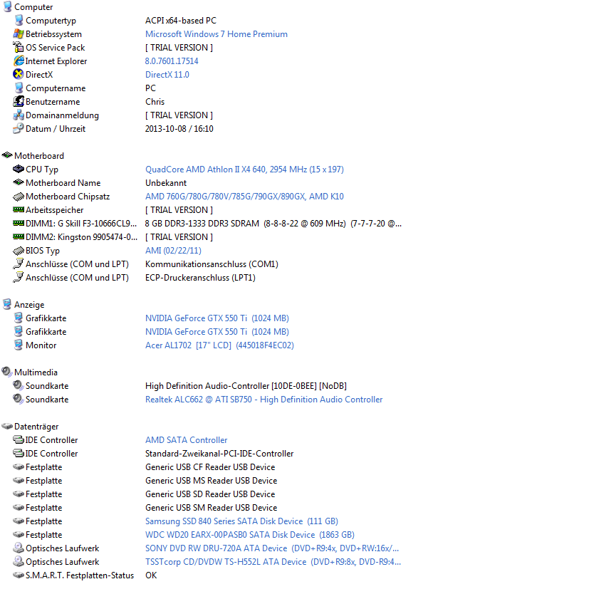 Achja ähm ich hab von Nvidia den Treiber 327.23 Drauf der wurde bei mir heute aktualisiert.