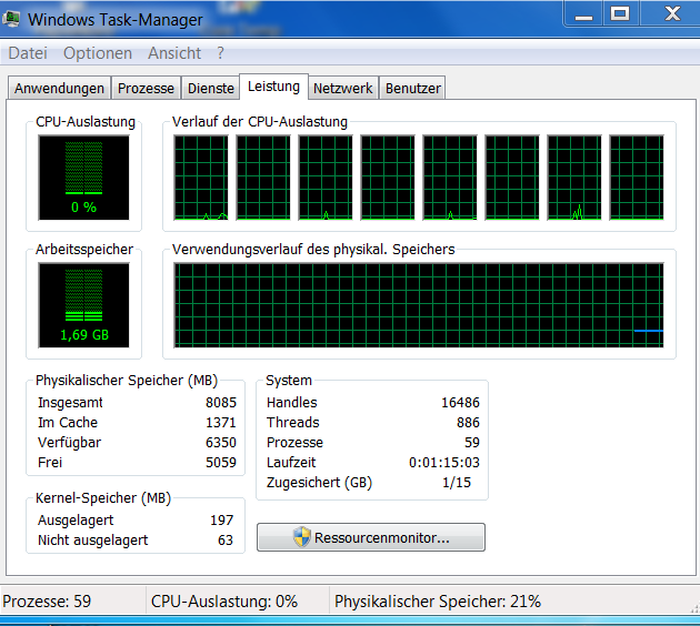 Werd das Gefühl nicht los, dass es doch an der CPU liegt... Teilweise doch am Limit (bzw. alle Kerne bis zu 80% ausgelastet)