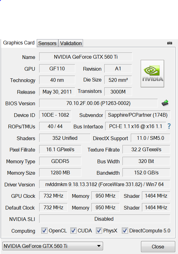 meine grafikkarte ist die Nvidia Geforce gtx 560 ti.