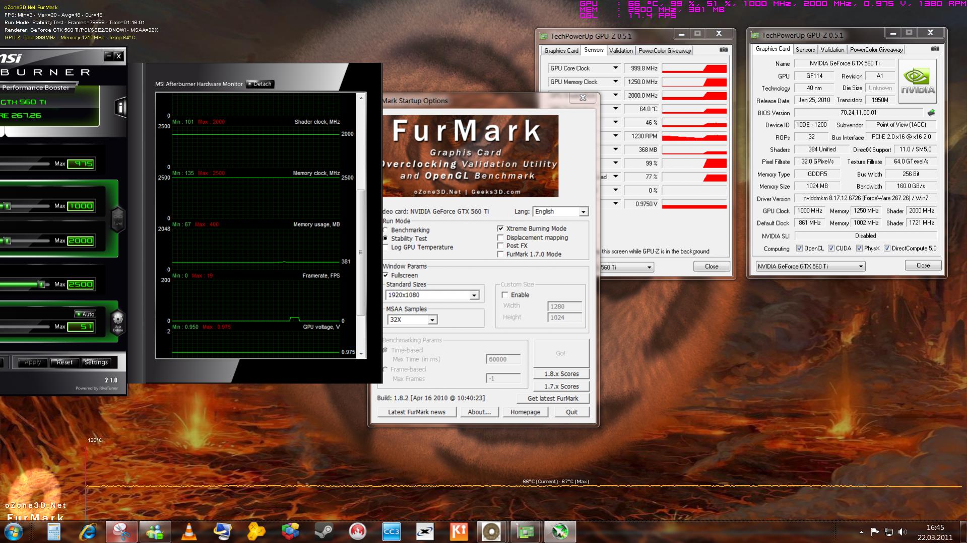 ich habe mcih gestern mal ragesetzt und meine EVGA GTX560 Ti übertaktet (Werksmäßig auf 851/1702/2045) Habe sie Problemlos auf 900/1800/2100 bringen können, alles was darüber kommt, führte zu Abstürze im Benchmark usw.