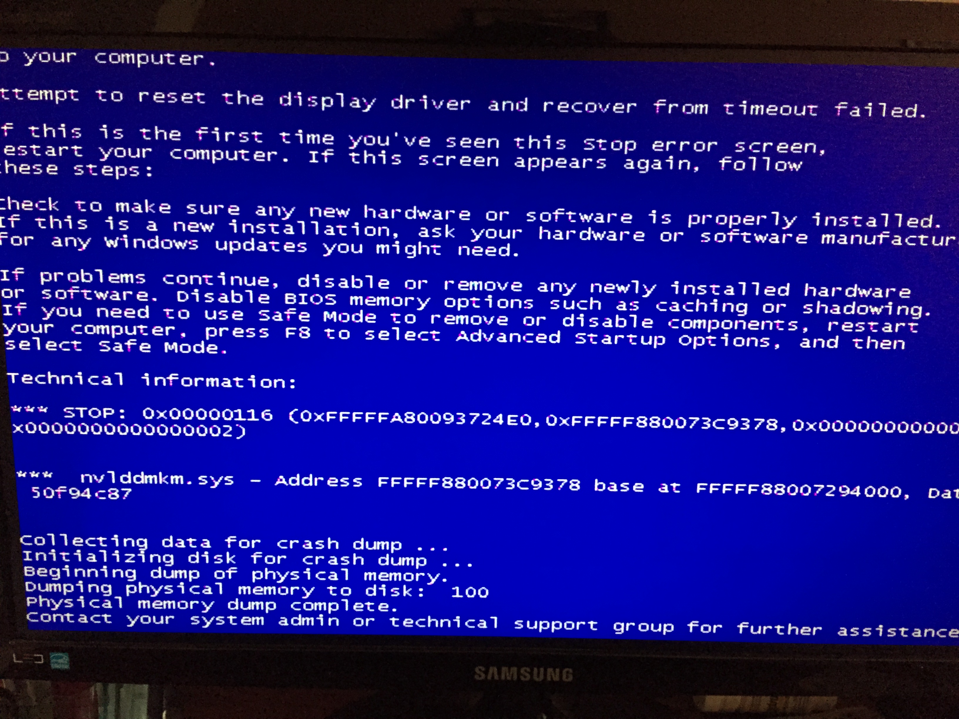 2. Windows fängt den Timeout nicht ab. Dann bleibt der Bildschirm meistens einfach schwarz. Aber ich habe dabei (als ich versucht habe die Treiber zu deinstallieren) auch mal einen Bluescreen gehabt, der mich stark an Deinen erinnert.