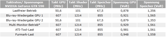 Schau Dir mal die Tabelle im Anhang an. Dort ist aufgeführt welchen Takt die GTX 590 im Idle haben sollte.Nuri schrieb:...woran siehst du das denn das sie im 3D Modus taktet??
