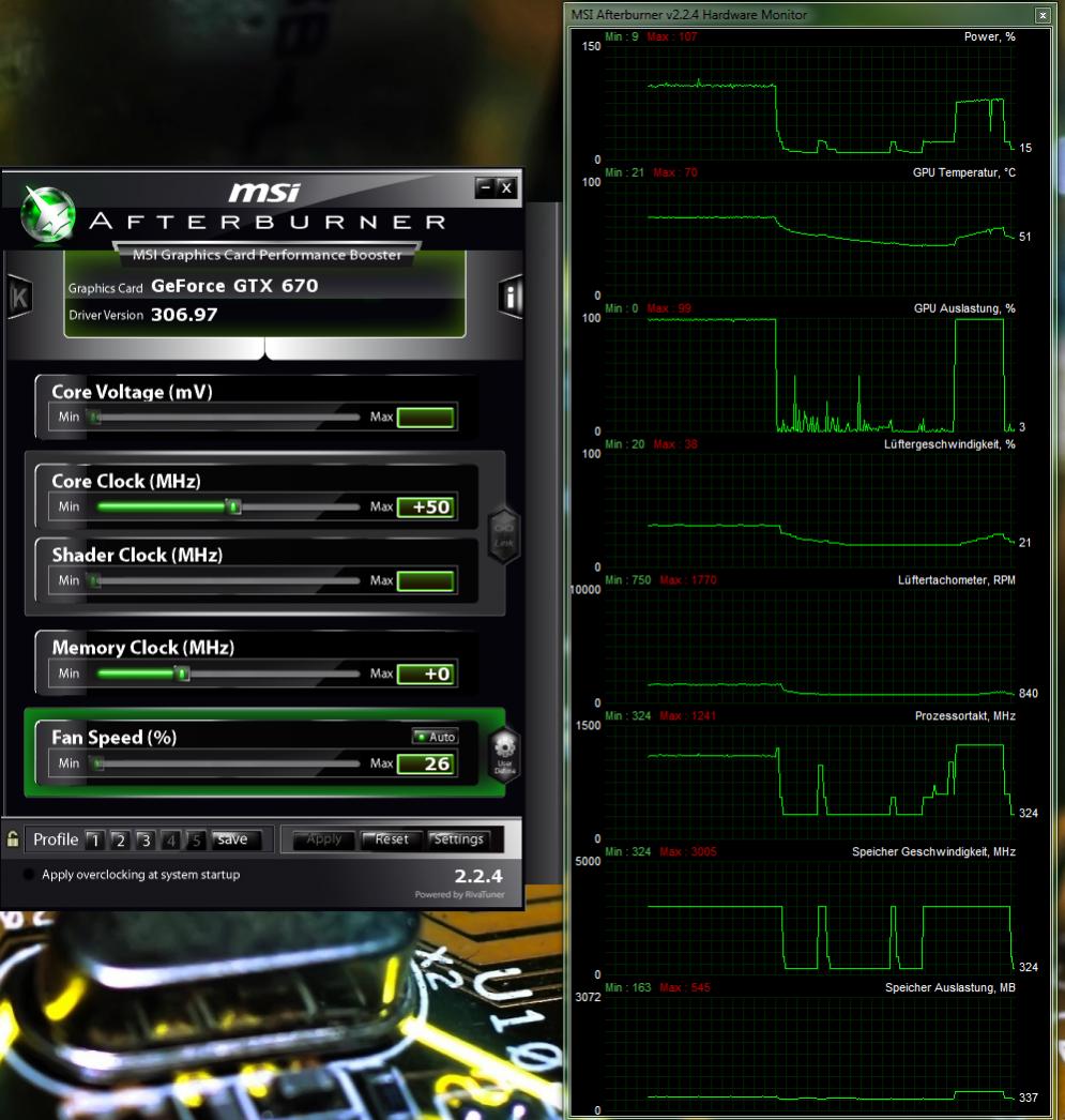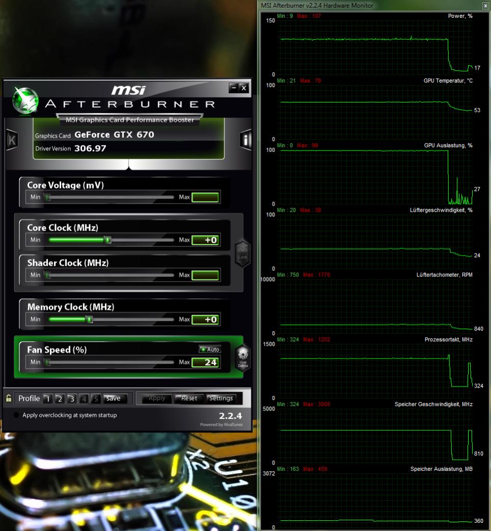auch gigabyte, ok. Naja lass die so ich hab jetz bei msi afterburner 3 settings gespeichert, die erste: ohne übertackten,