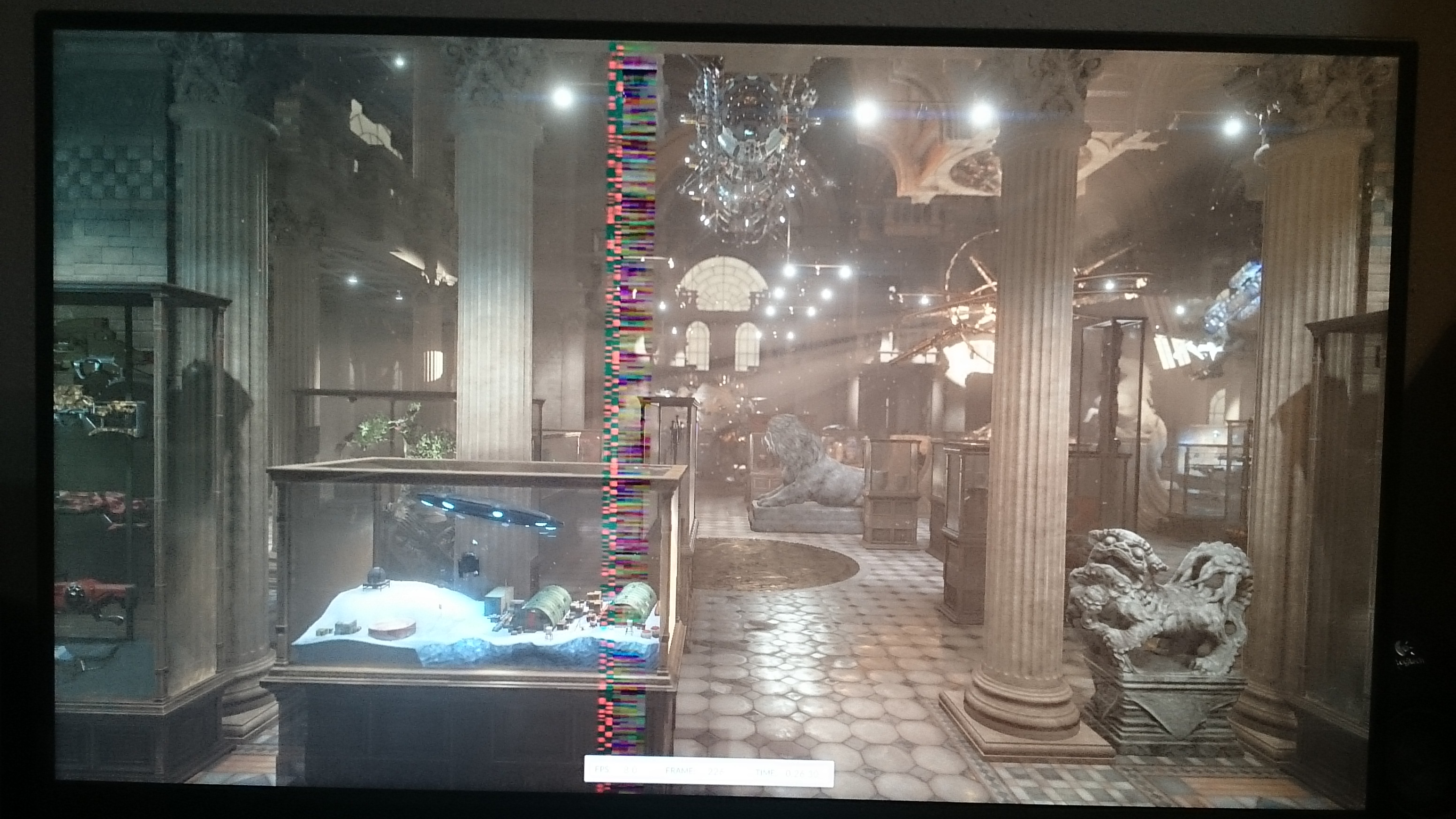 Bei Futuremarks 3Dmark ist zuerst auch alles gut gelaufen, beim Test "Time Spy" (und nur dort) gab es in beiden Abschnitten allerdings eine sich verändernde, vertikale Bildstörung. Diese ist auf meinen Fotos zu sehen.