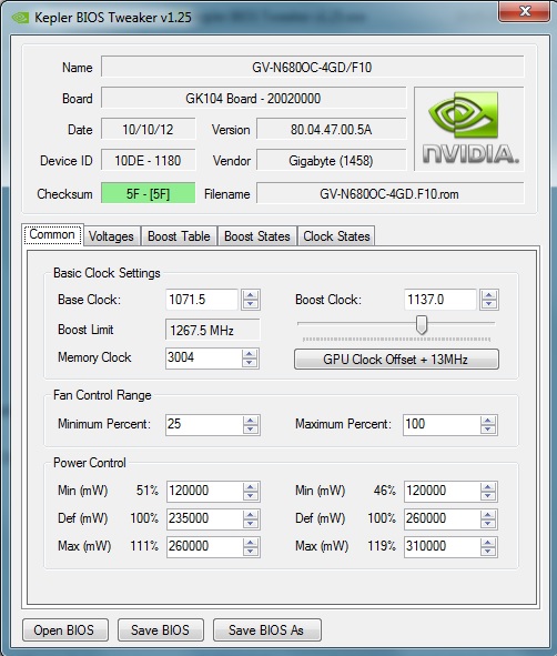 ) entdeckt, dass wir die gleichen Karten haben. Gigabyte gibt der 680 OC 4GB eine Powertarget von 235 Watt mit mit den + 10 % die man per Regler draufpacken kann, sind wir schon bei 260. Daran liegt es also nicht :-)