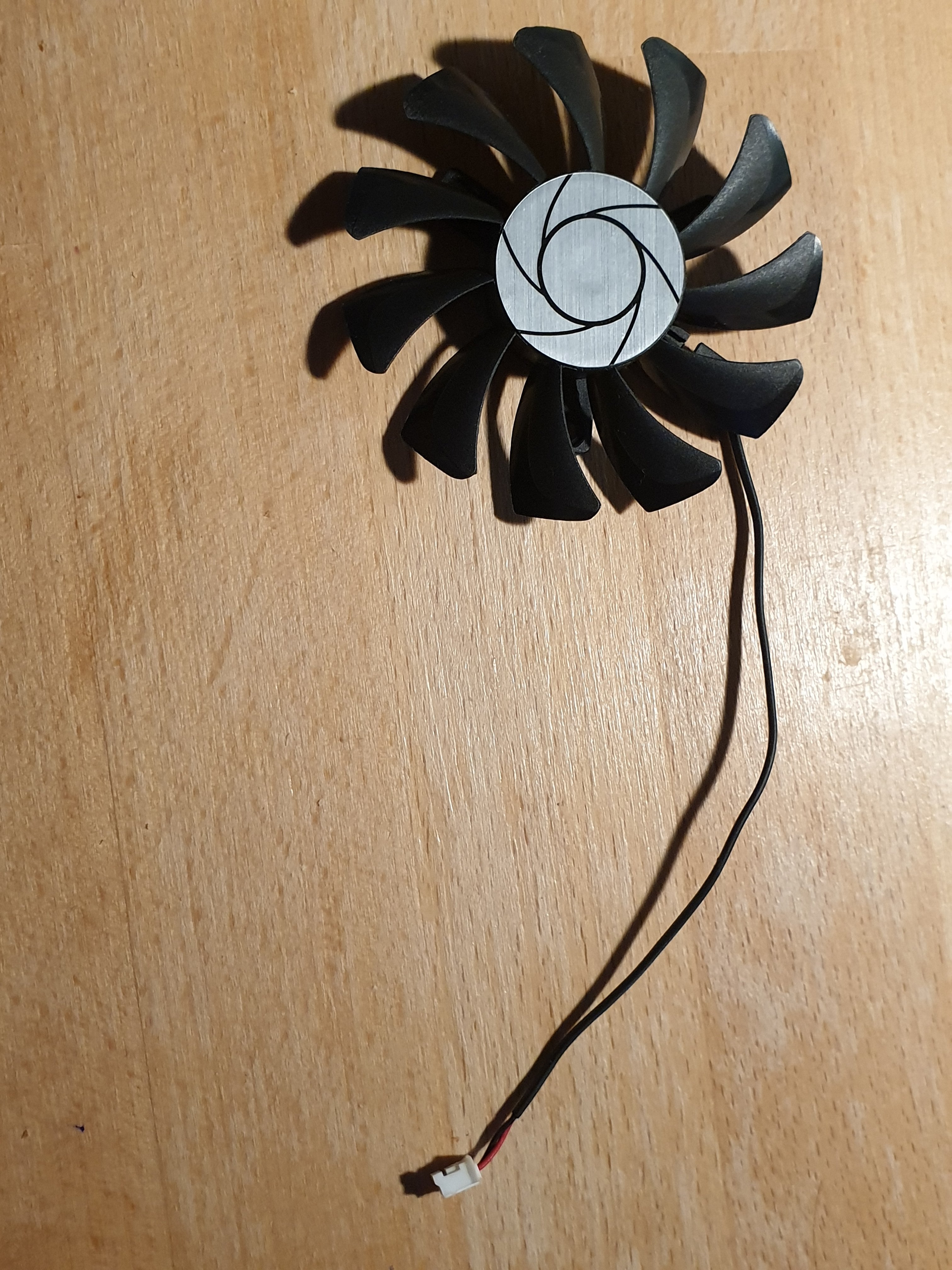 Die genauen Daten sowie die Stecker habe ich abfotografiert. Der Originallüfter befindet sich noch in der Grafikkarte.